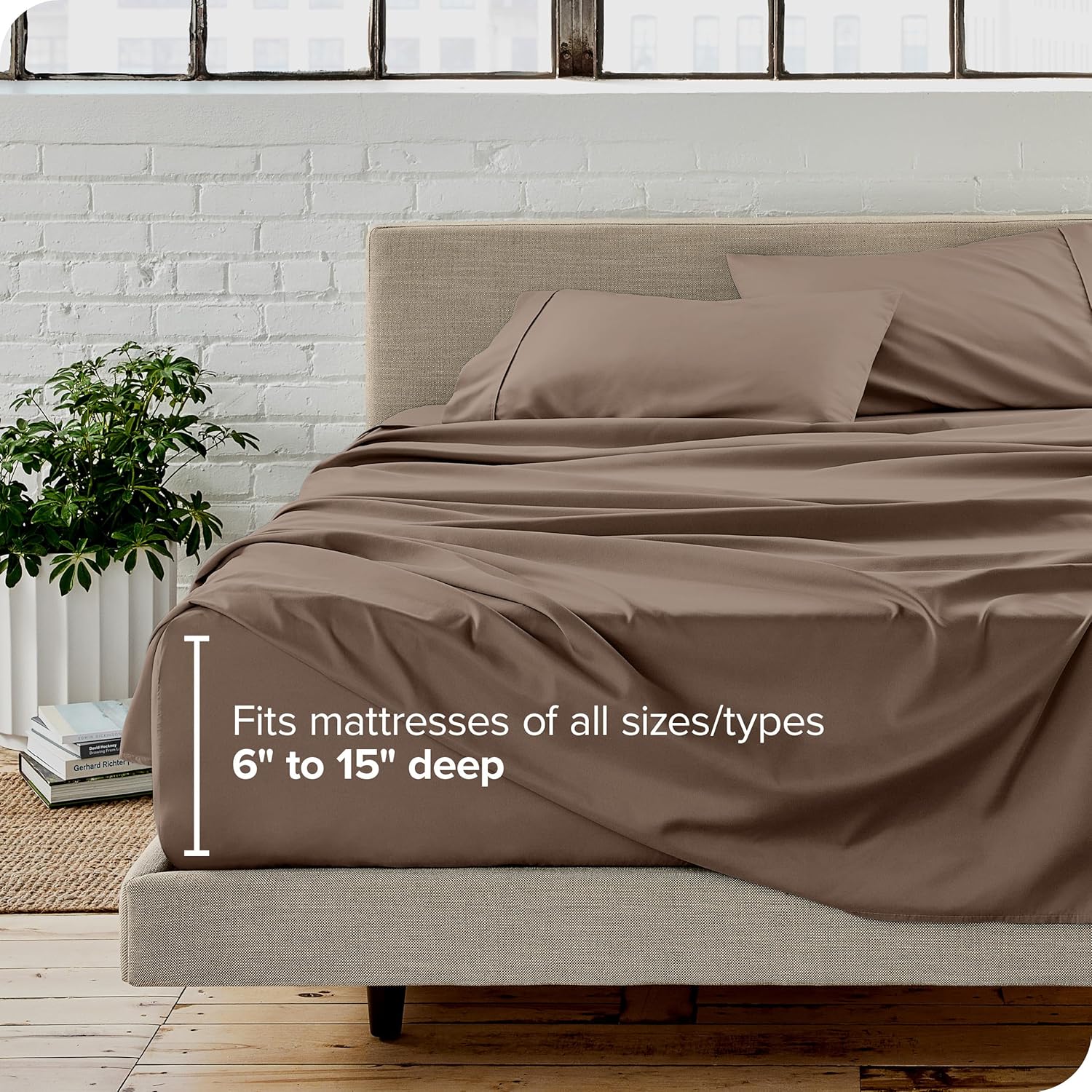Bare Home Split Head Flex King Sheet Set - 1800 Ultra-Soft Microfiber Bed Sheets - Double Brushed - Deep Pockets - Easy Fit - 4 Piece Set - FlexTop King Bedding Sheets (Split Head Flex King, Taupe)