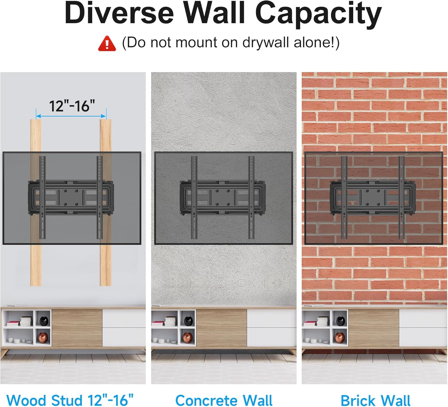 - SOLID & RELIABLE: With ultra strong 6 arms design and constructed of high-quality cold-formed steel, ensure the safety and reliability of the heavy duty TV bracket. Each swivel TV wall mount has been strength tested to ensure security for your TV and family.