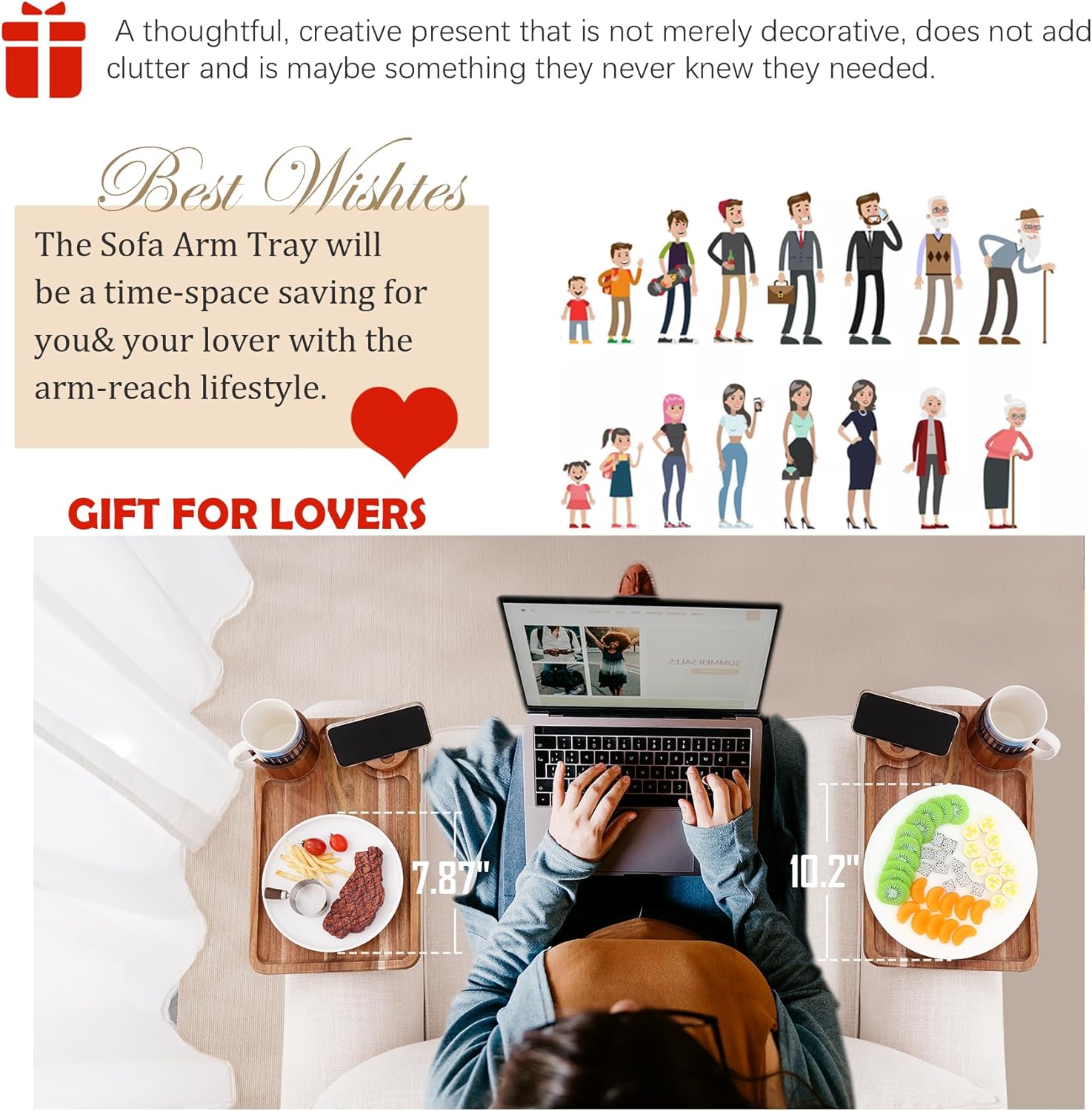 - 🎃Use as a TV Tray, Creat a Stable Surface on Sofa/couch Armrest🎃: If don't not have enough room for side table/end table,or just want a within arm reach TV tray table. This is wide sofa arm tray has adequate room for drinks,phone,snacks,plate,bowl,or remotes.Definitely a space-saver!