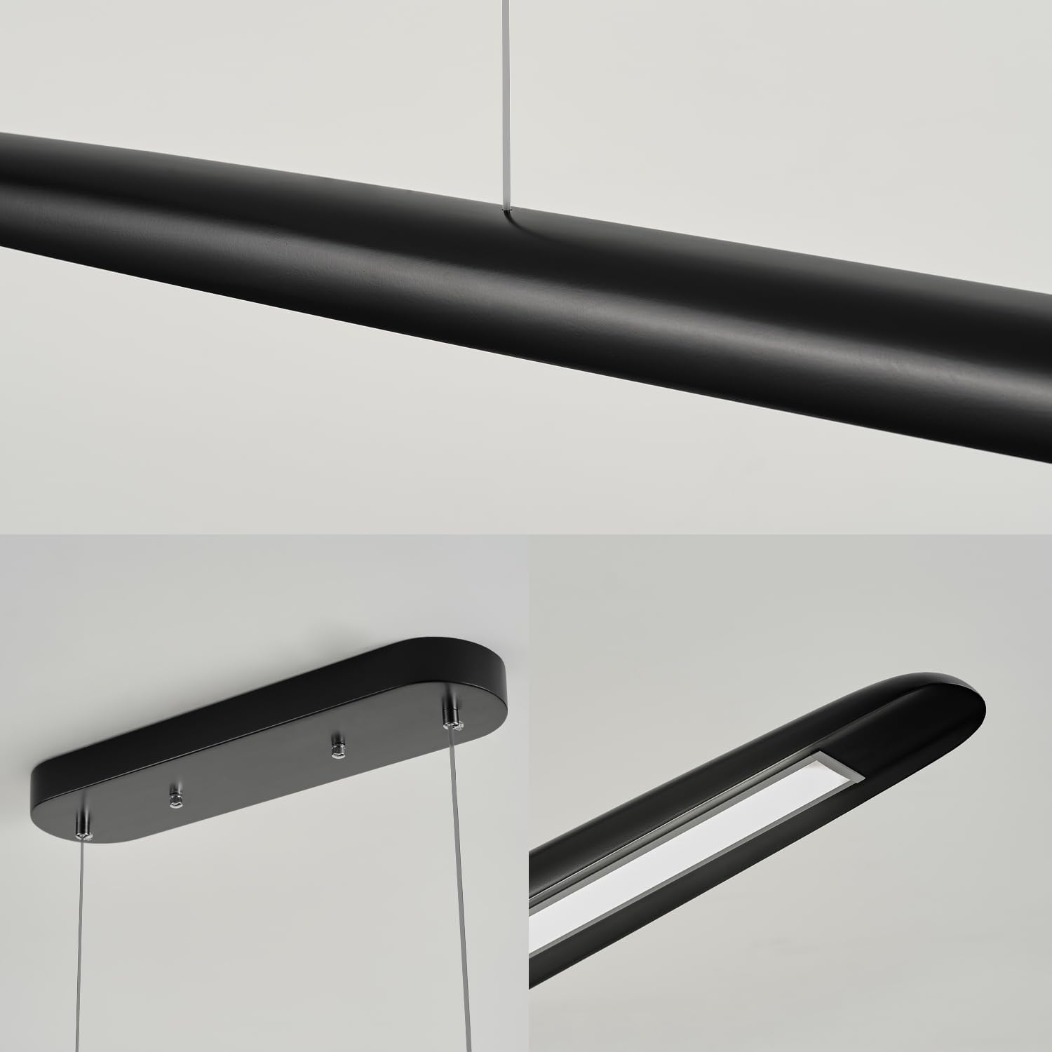 - ❤【Minimalist Pendant LED Linear Chandelier for Kitchen】This sleek design illuminating the space with a single long rail powered with state of the art LED technology. The rest of the piece is kept simple, hung with cables from a matching rectangular canopy. Contemporary in both style and application, the minimalism aesthetic paired with energy efficiency creates a truly modern lighting option.Making your cooking and dining experiences more intimate with upscale lighting from the 71" Linear LED Pendant.