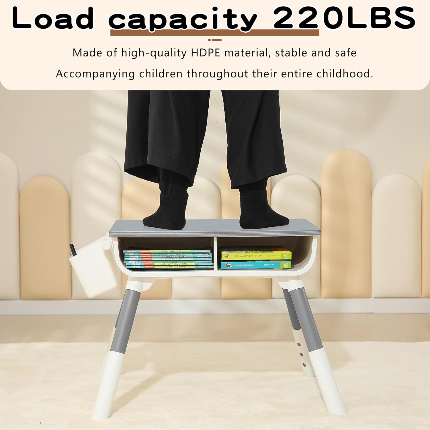- 🎉【Trapezoidal structure】:This set of kids art table adopts trapezoidal structure to follow the mechanical principle, the overall stability and pressure resistance, so that the center of gravity is closer to the ground, the baby's writing and painting is not easy to shake, not easy to roll over, and we use non-toxic HDPE material, safely accompany children through every happy day.