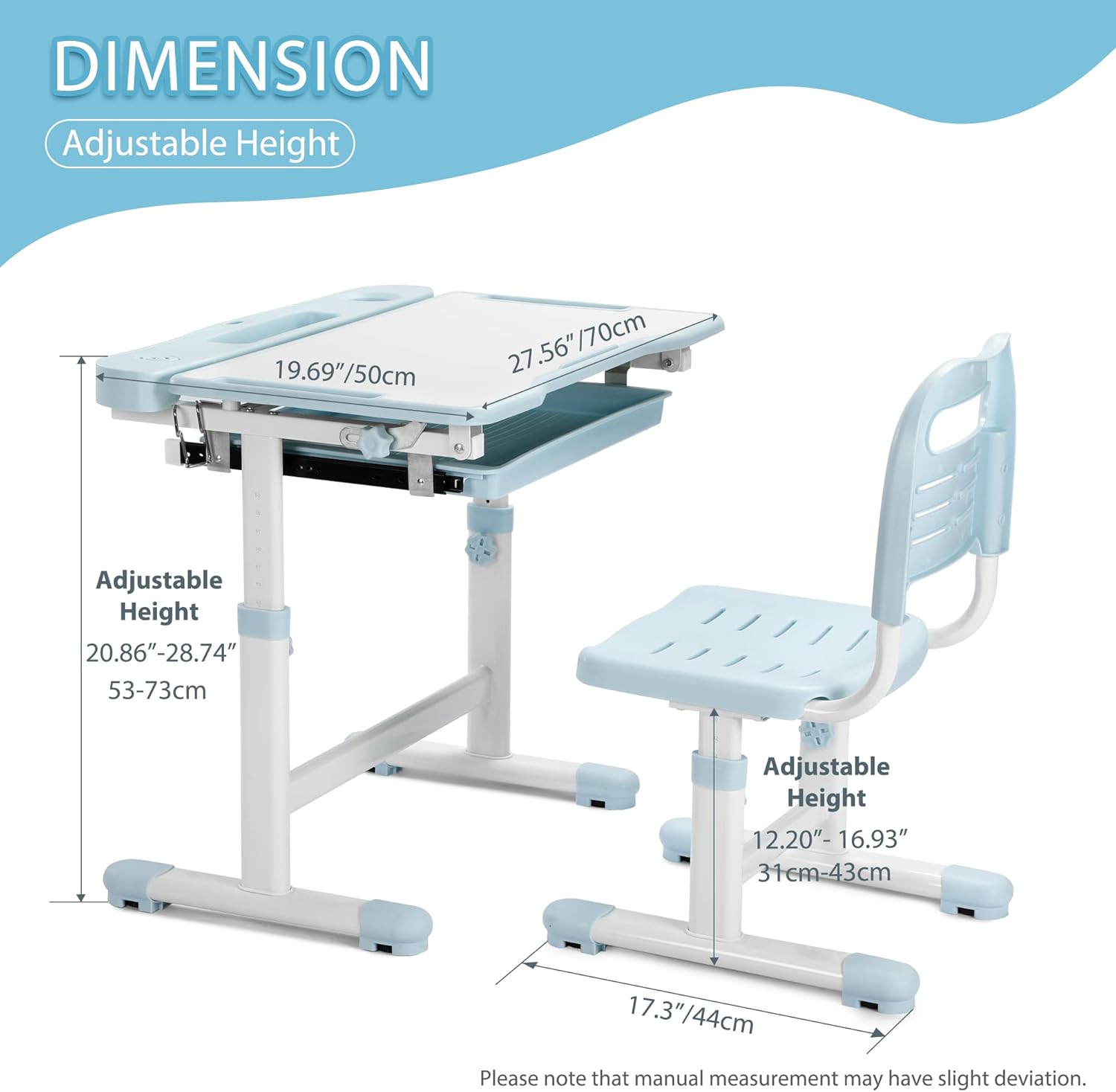 - Height Adjustable: The table and chair can be adjusted freely, with a height range of 20.86"-28.74" for the desk and 12.20"-16.93" for the chair; It is suitable for children aged 3-12