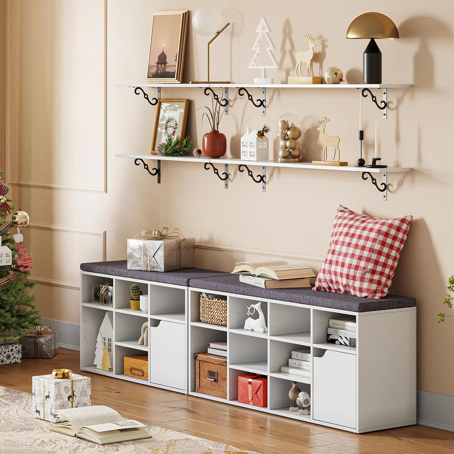 - ăAge with Grace in Any SettingăTurn your any wall into a real eye-catcher space with these large wall shelving. Long and wide enough for plates, glasses, books, legos, collection or towels etc. Make a statement in entryway, bathroom, balcony, study, kitchen, laundry, bar area, pantry