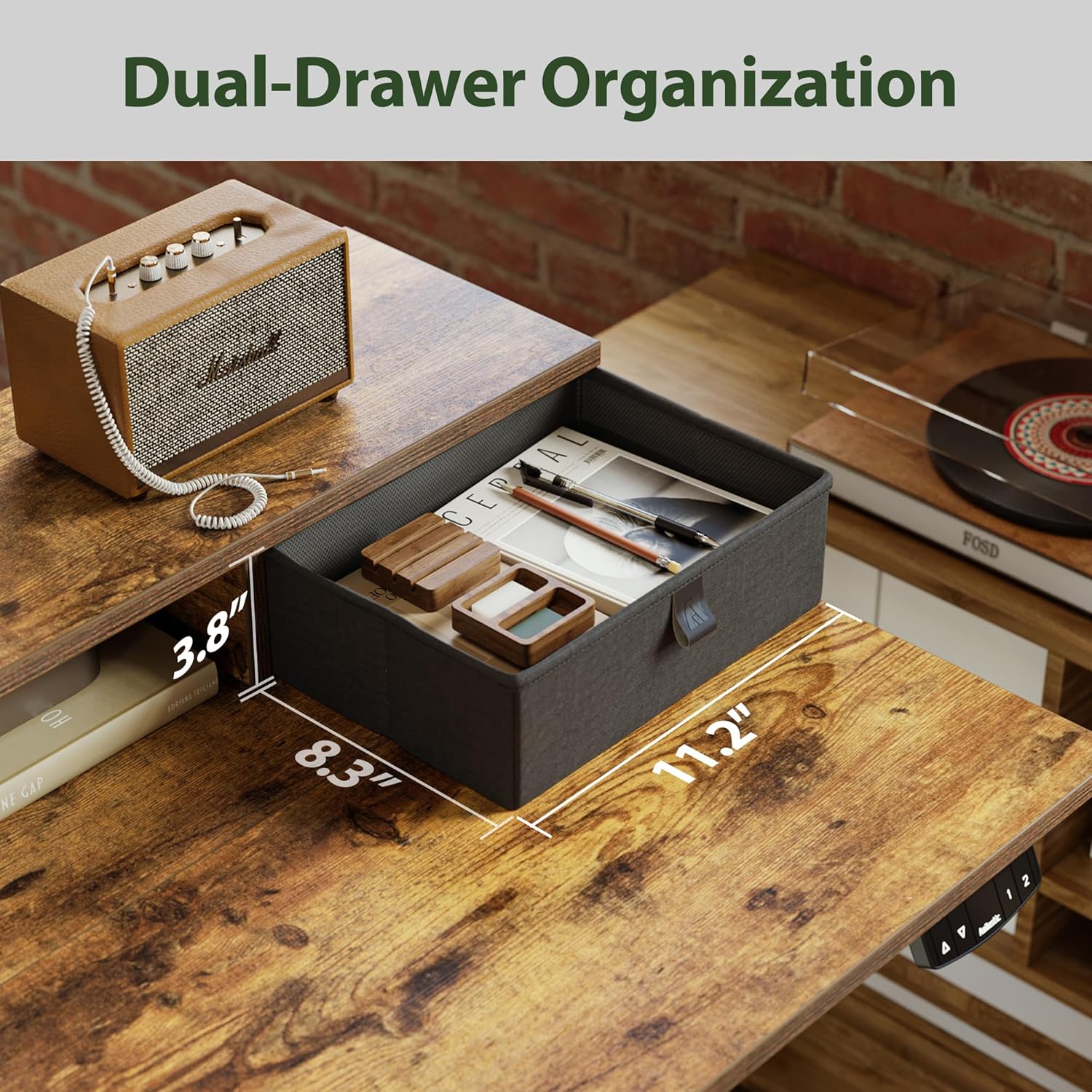 Agilestic Electric Standing Desk with 2 Drawers and Keyboard Tray, 55 x 24 Inches Ergonomic Adjustable Height Desk with Storage, Sit Stand up Computer Workstation, Rustic Brown