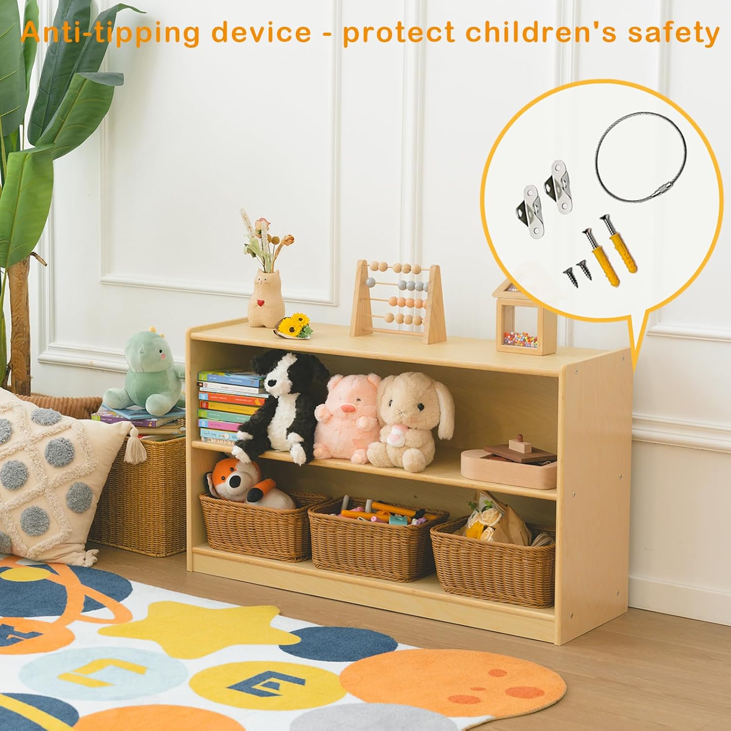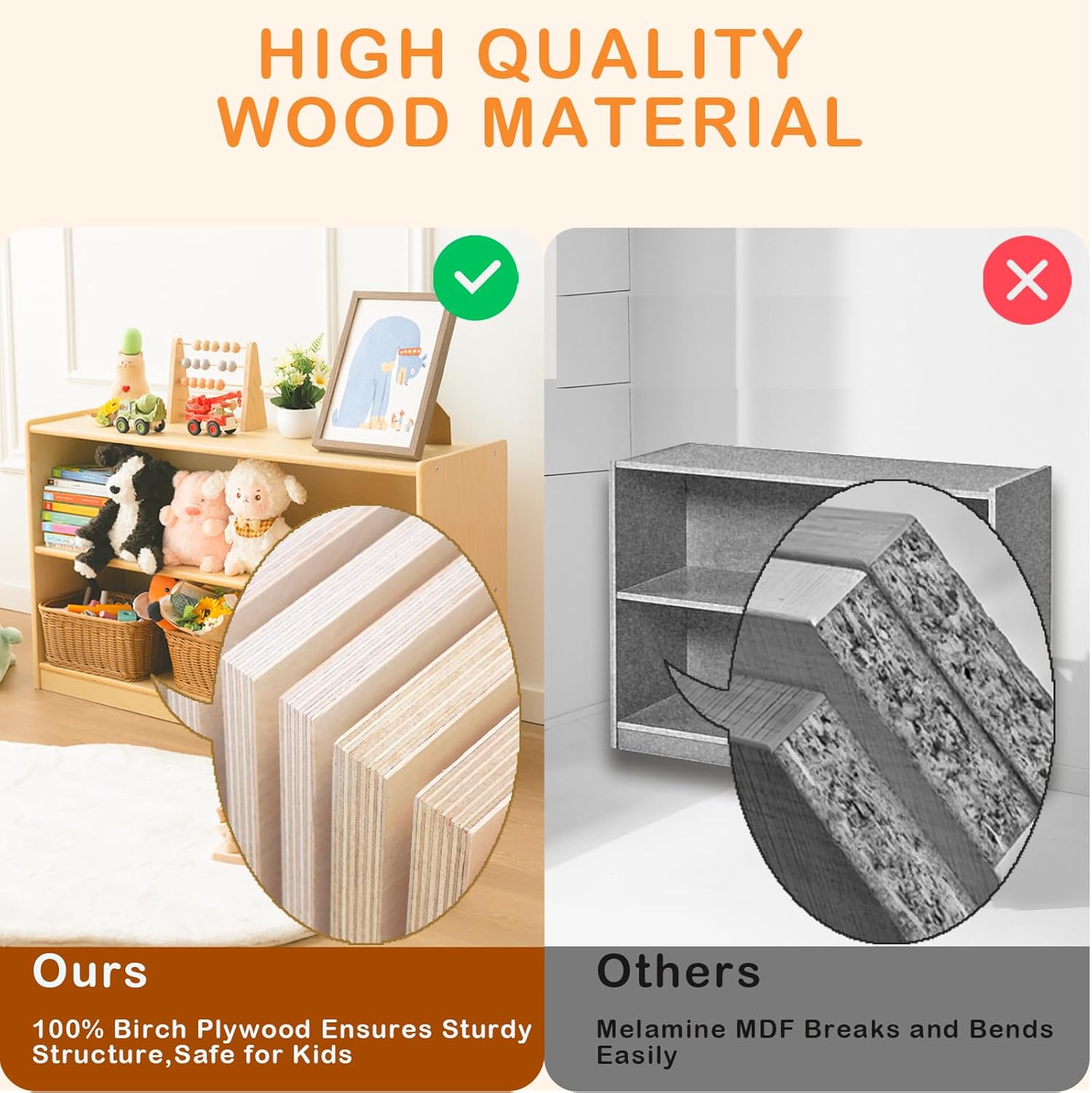 - Premium Birch Wood Quality: Our Montessori shelf is made from 100% birch plywood, ensuring a solid structure. The combination of natural wood texture and multi-compartment space makes it the perfect school or kids room storage solution to keep toys organized. The smooth surface is easy to maintain and wipe with a dry cloth