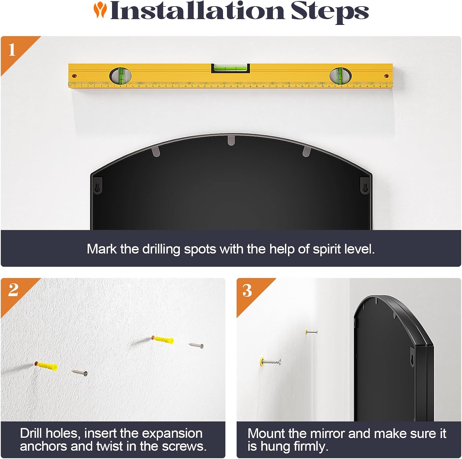 - HD Glass: The arched wall mirror is made of a full metal frame, which is rust-resistant. The high-definition 4 mm glass provides clear and undistorted reflections, enhancing the room's atmosphere
