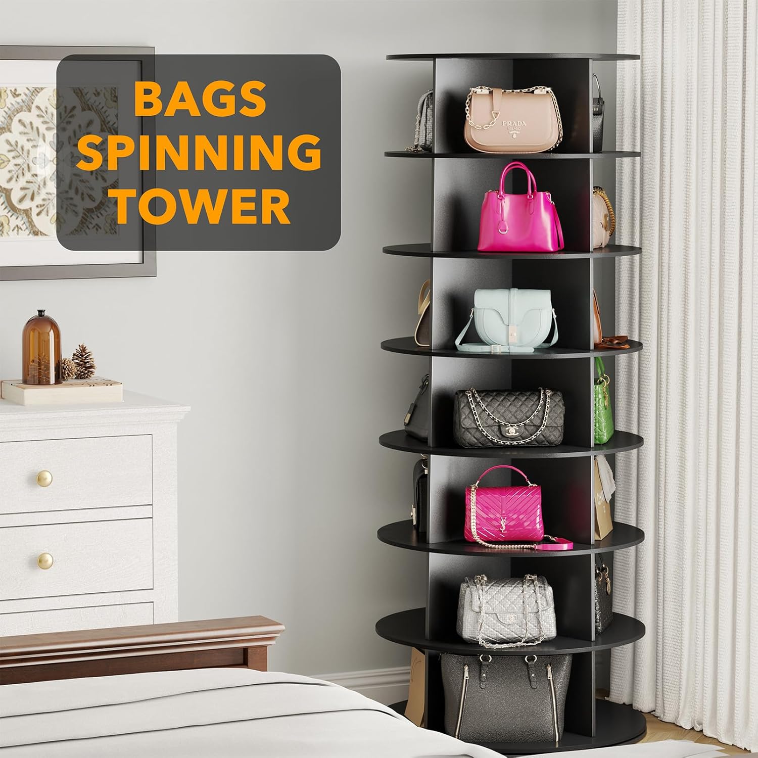 SpaceAid 7 Tier Rotating Shoe Rack Tower, Spinning Shoe Display Lazy Susan, Revolving 360 Shoe Rack Storage Round Carousel, Vertical Handbag Rotate Shoes Closet Organization (7-Tier Black)