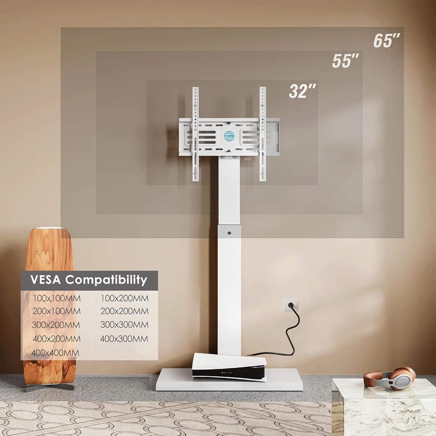 FITUEYES Floor Swivel TV Stand with Power Outlet for 32-65 Inch TVs, Floor TV Stand with Mount Height Adjustable with Iron Base, Hold Up to 88lbs, Space Saving for Bedroom, Living Room