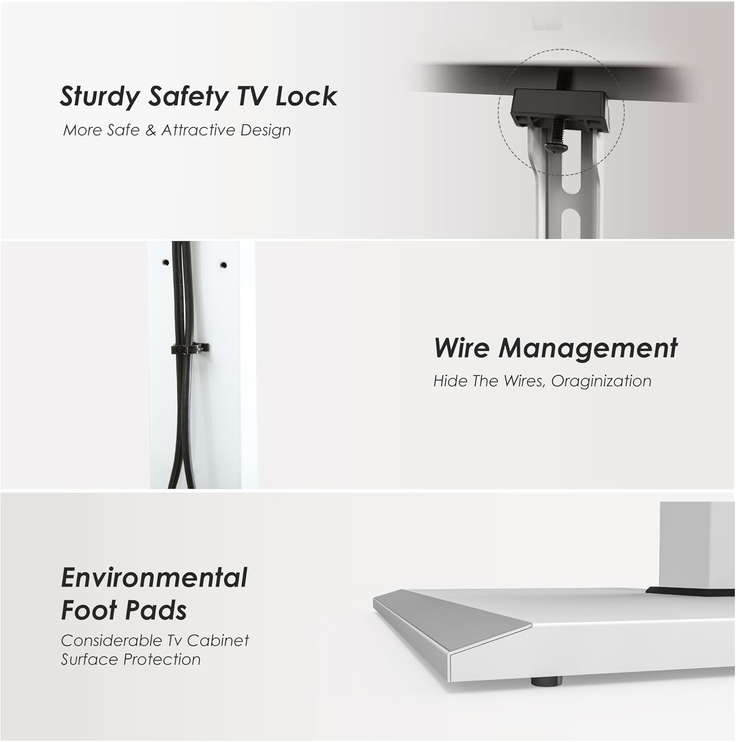 - Height Adjustment & 70degree Swivel Mount: This 80 Inch TV Stand mount features a good range of height adjustment for living room purposes. Safety "Bracket Lock" design to protect your TV from falling down or slipping aside. Meanwhile, this corner TV stand could swivel left and right 35 degrees in each side to provide you a better viewing angles when watching TV
