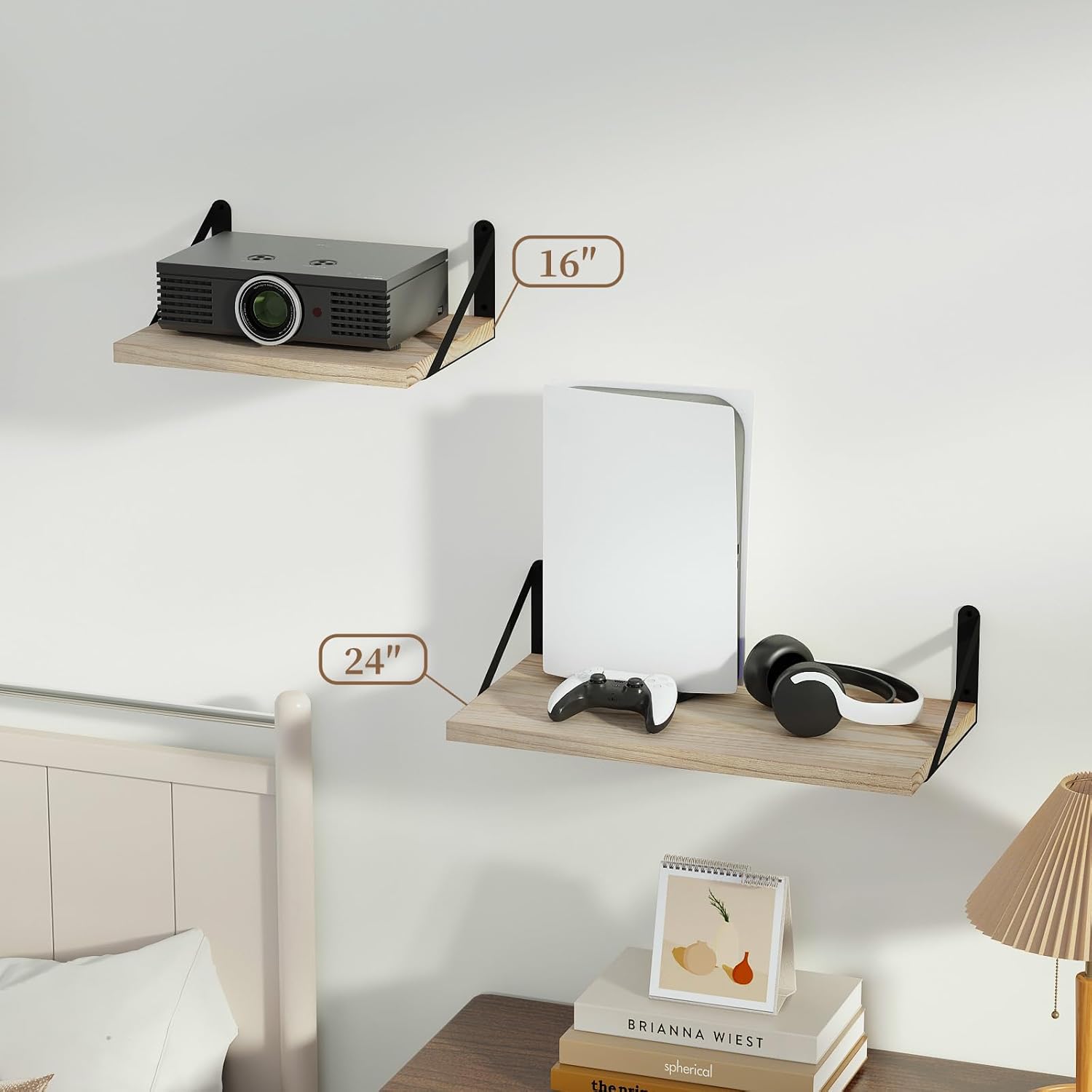 - Solid Wood Wall Shelves: Crafted from solid wood and durable metal brackets, you can confidently display items such as books, photos, plants, or knick-knacks, each shelf supporting up to 40 lbs
