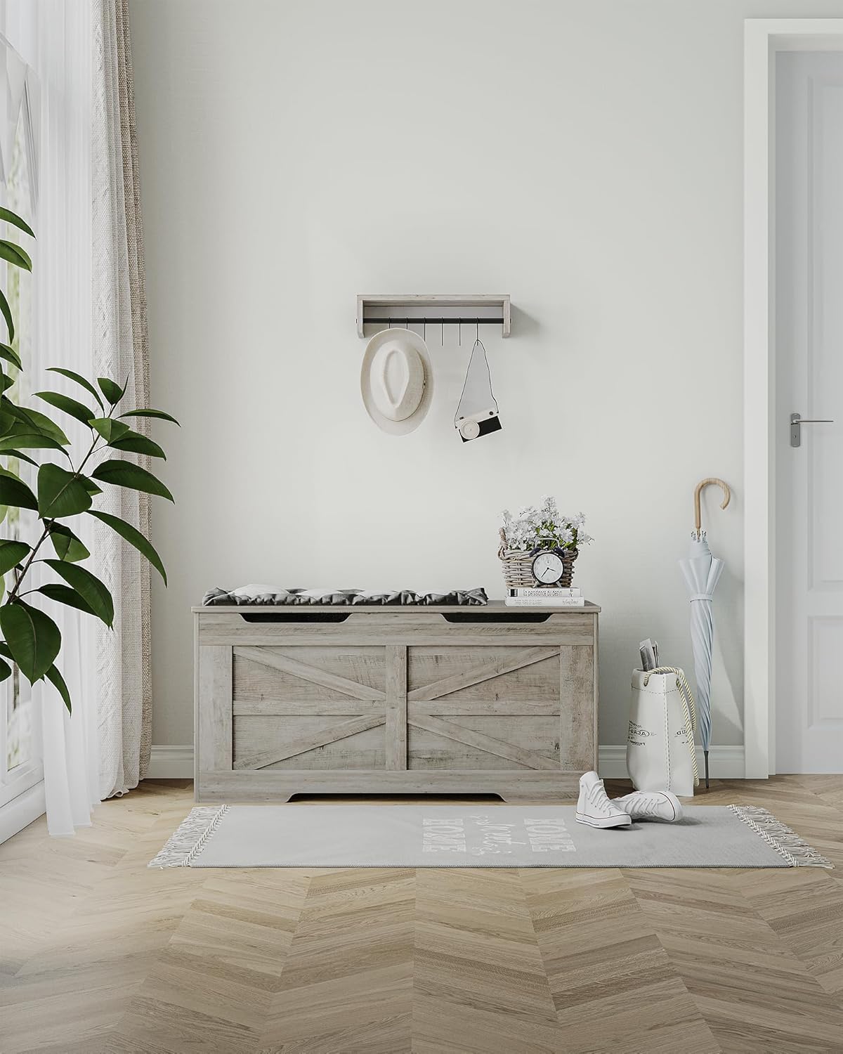 39.4" Storage Chest, Extra Large Storage Trunk with 2 Safety Hinges, Wooden Box Bench, Lift-Top Organizer Chest, Shoe Bench for Entryway, Bedroom, Living Room, Greige SB03405X
