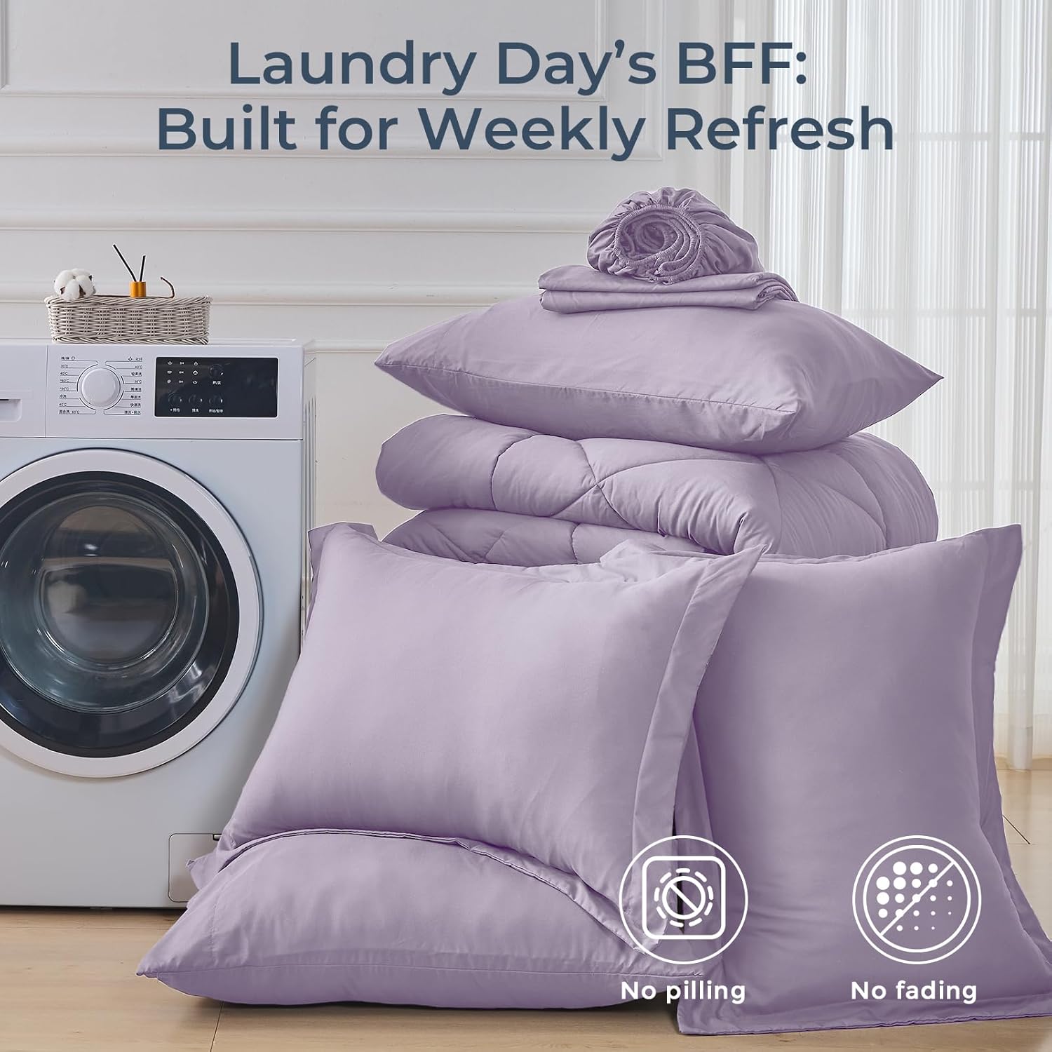 HEVUMYI Full Purple Comforter Set - 7-Piece All Season Bed in a Bag Full, Ultra Soft Bedding Set with Comforter, Flat Sheet, Fitted Sheet, Pillowcases, Pillow Shams, Lavender Purple