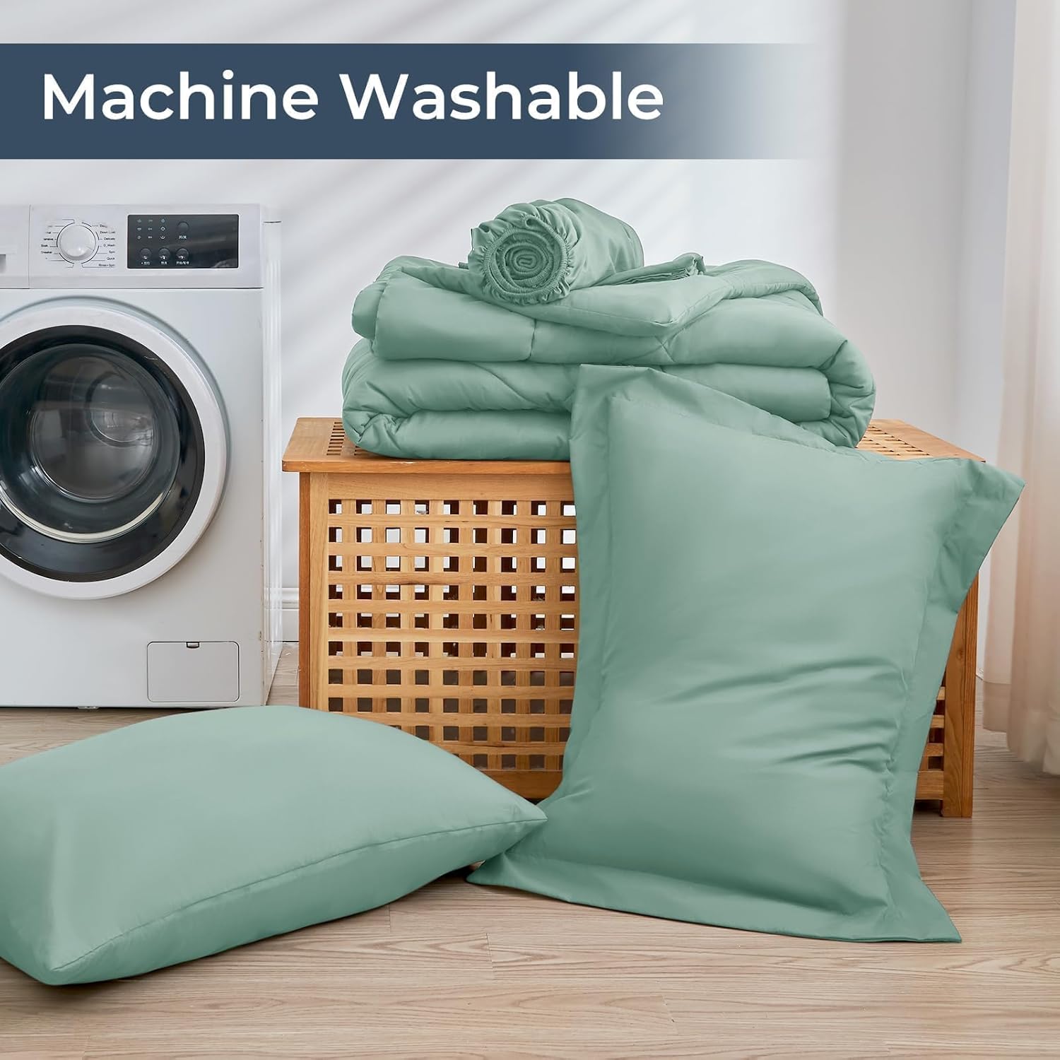 HEVUMYI Sage Green Twin Comforter Set - 5-Piece All Season Bed in a Bag Twin, Ultra Soft Bedding Set with Comforter, Flat Sheet, Fitted Sheet, Pillowcases, Pillow Shams, Sage Green