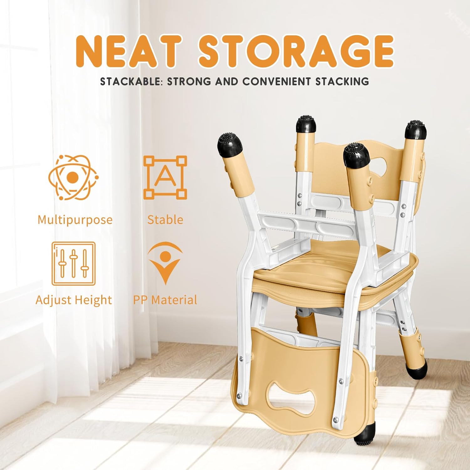 - Usage Scenarios and Material Features - Suitable for home, school, and kindergarten settings. The ergonomic design provides comfortable support, while the crossbeam structure ensures stable and even weight distribution. Anti-slip design and petal-shaped chair legs protect floors from wear and tear.