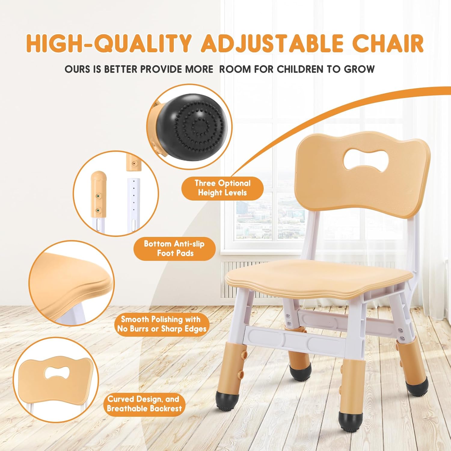 - Core Selling Point - The Adjustable height children Chairs feature a three-level height adjustment design, catering to different heights and ages of children. It provides a comfortable backrest and a curved design to support and protect their spine, preventing unhealthy habits and promoting healthy posture. Ideal chairs for kids to ensure a comfortable seating experience.