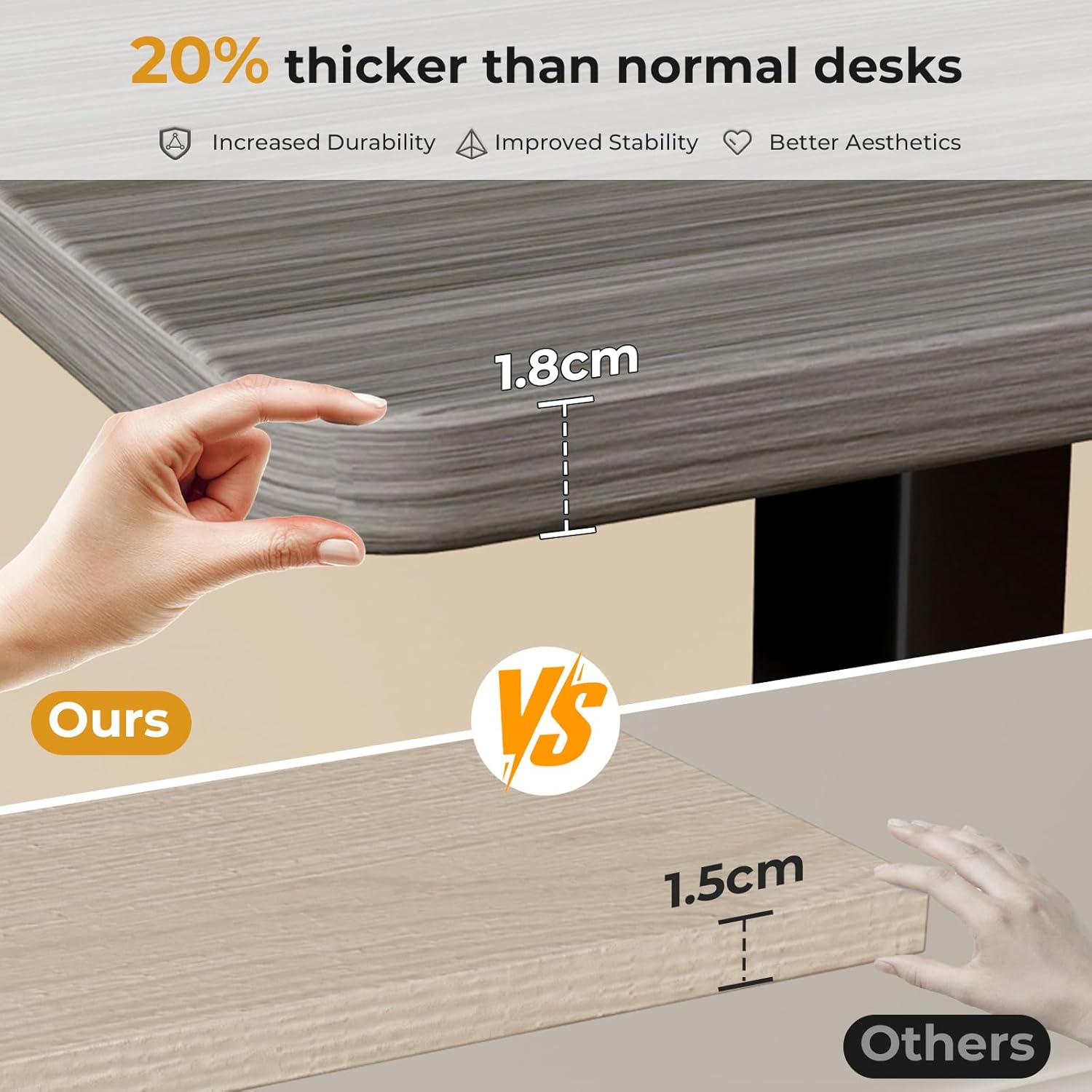 - Solid Whole Piece Tabletop - The one-piece desktop is free of seam breaks for a completely smooth surface. Special 34.6” x 19.7” size is space efficient, can easily fit into any small area, sufficient for computers, laptops, keyboard and other office supplies