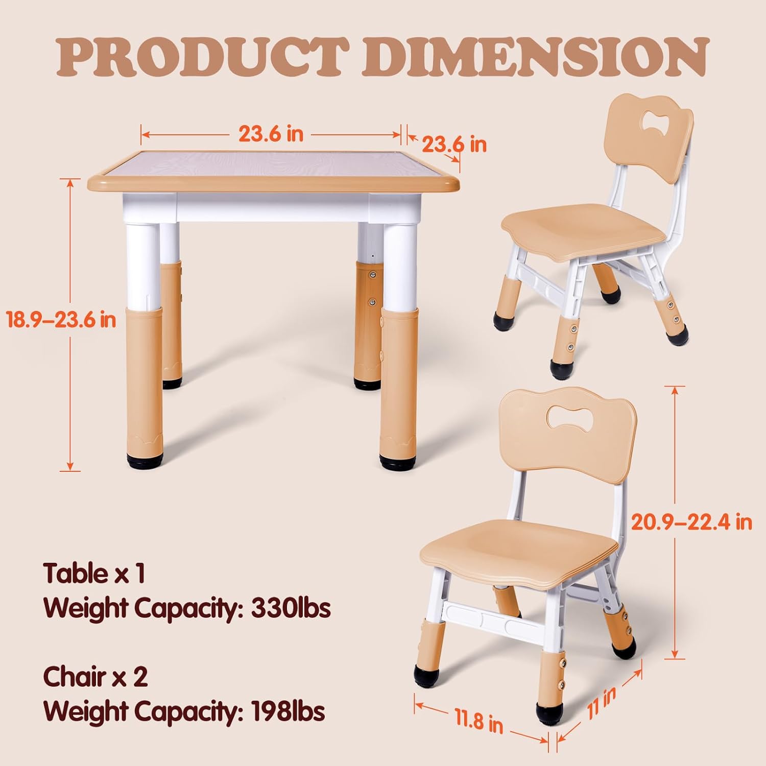 Kids Table and 2 Chairs Set, Height Adjustable Toddler Study Table and Chair Set, Kid Size for Ages 3-8 Children, Graffiti Desktop, Easy to Wipe/Arts & Crafts, Homes/Classrooms/Daycare (Beige)