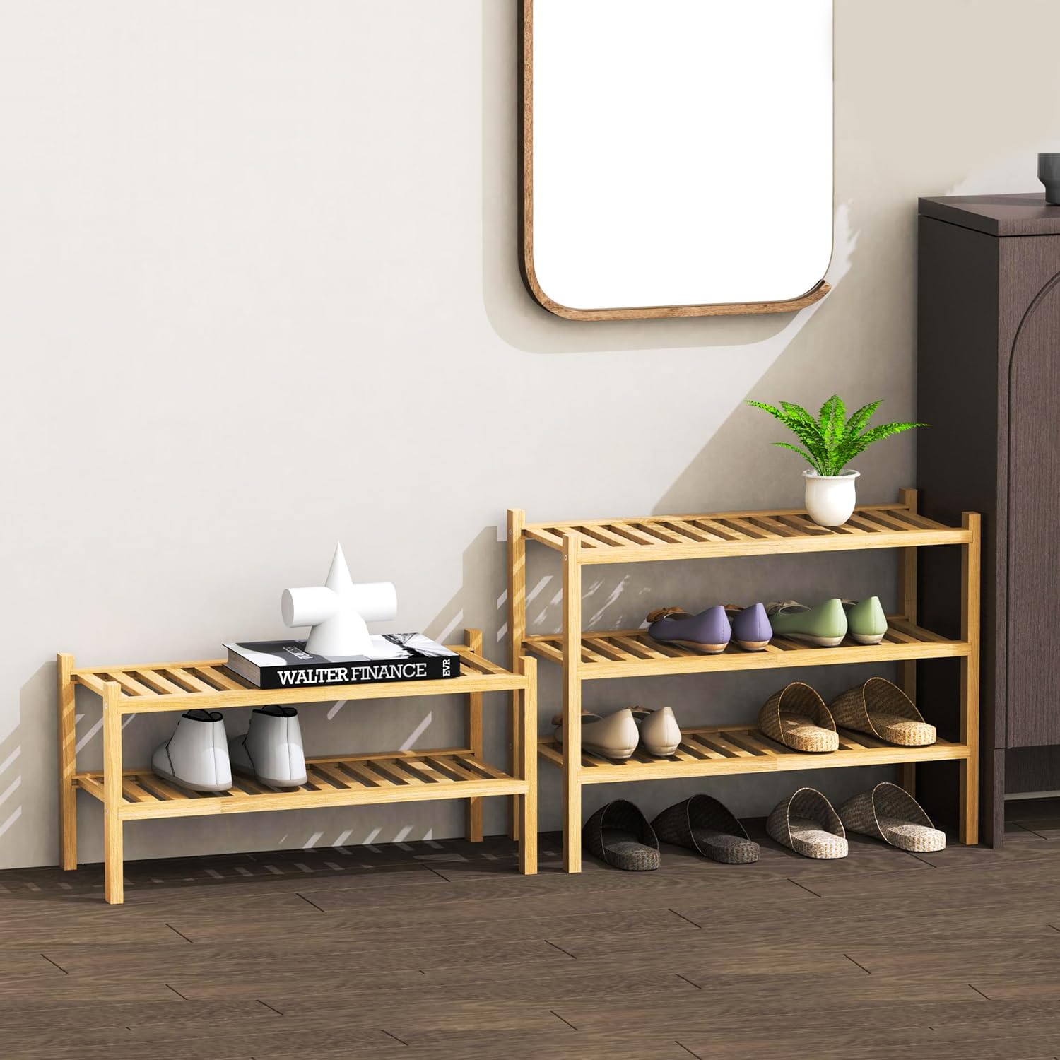 - Space Saving and Easy To Clean :Our bamboo shoe rack design is simple and close to life, multi-level to increase storage space storage and finishing to make your home more tidy and organized.shoe rack features a smooth surface Just wipe it with a damp cloth to keep it clean.