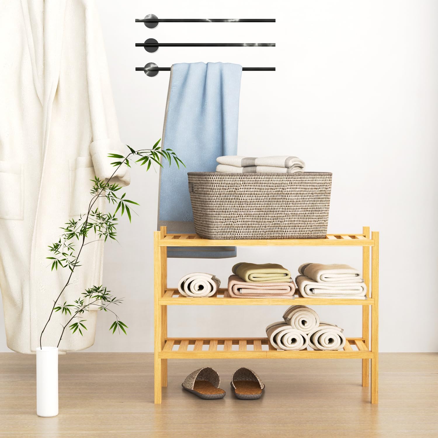 Shoe Rack 3-Tier Organizer-Stackable Storage Shelf with Multi-Function Combinations-Free Standing Bamboo Shoe Racks for Closet,Entryway,Hallway,Bathroom,Living Room Shoe Organization (Natural,3-Tier)