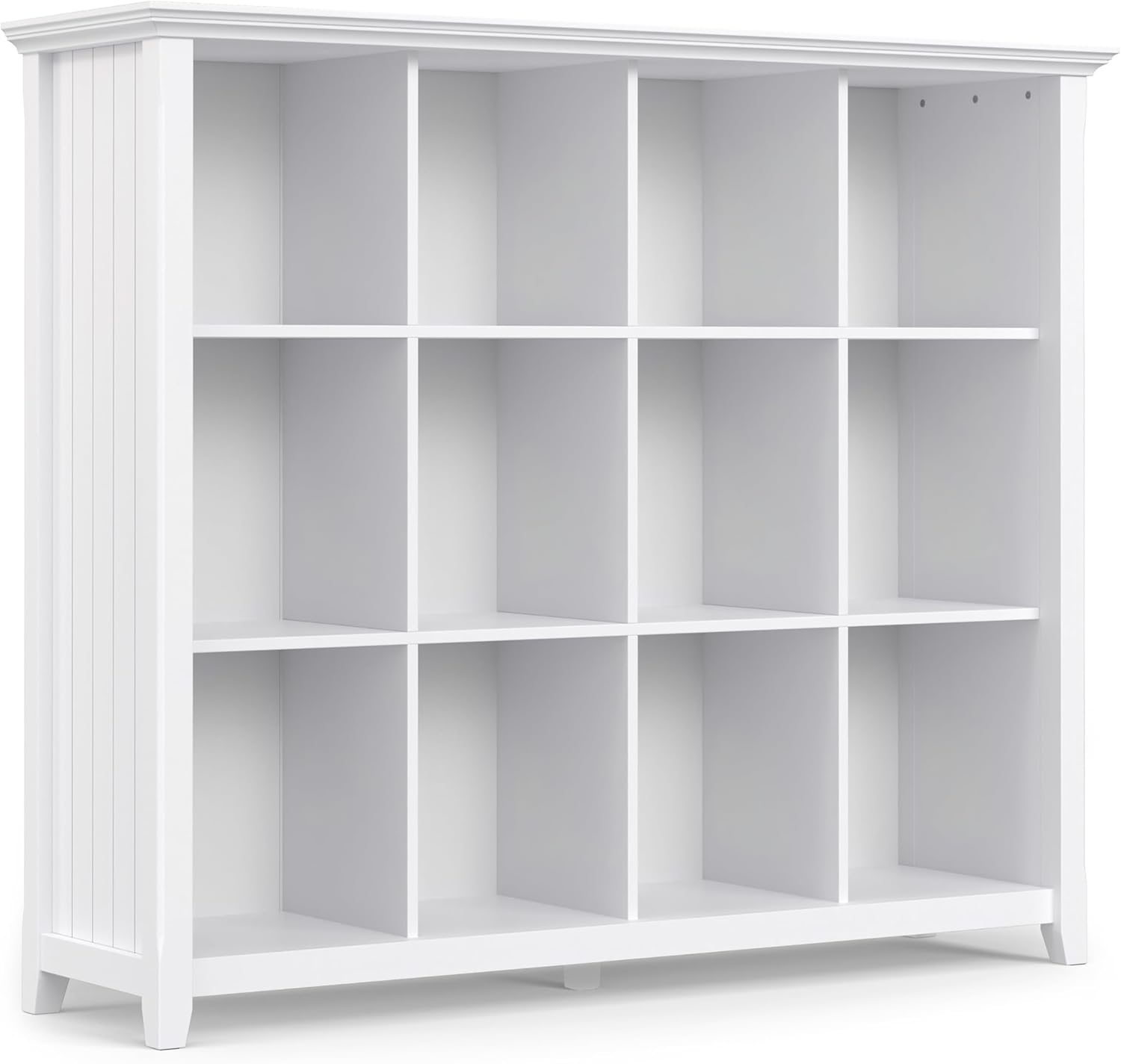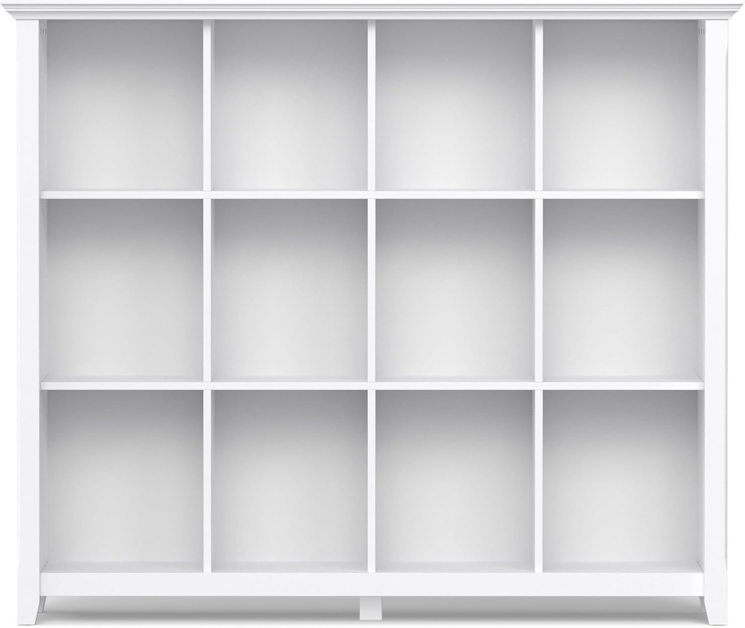 SIMPLIHOME Acadian Bookcase - 57 inch Tall 12-Cube Solid Wood Storage Display Unit in White, Transitional Cube Organizer for Living Room, Study Room or Office with Fixed Shelves and Tapered Legs