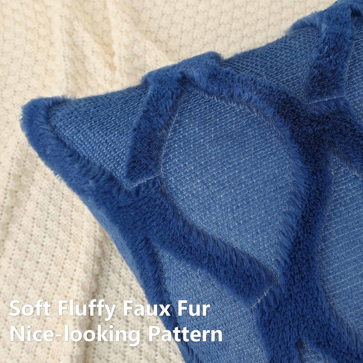 decorUhome Throw Pillow Covers 16x16 Inch Set of 2, Soft Plush Faux Fur Wool Dark Blue Couch Pillow Covers, Decorative Neutral Pillow Cases for Bed Sofa Living Room Home Decor