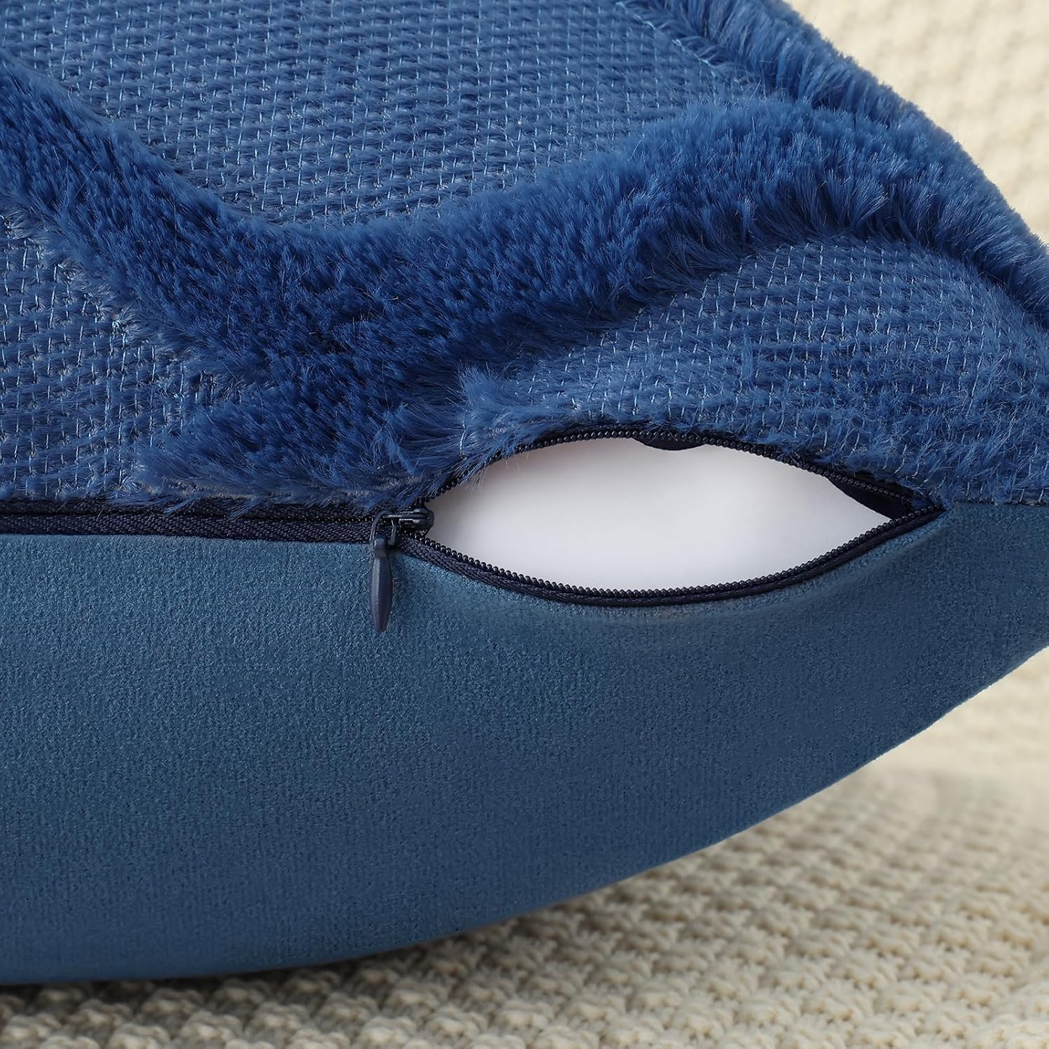 decorUhome Throw Pillow Covers 12x20 Inch Set of 2, Soft Plush Faux Fur Wool Lumbar Dark Blue Couch Pillow Covers, Decorative Neutral Pillow Cases for Bed Sofa Living Room Home Decor