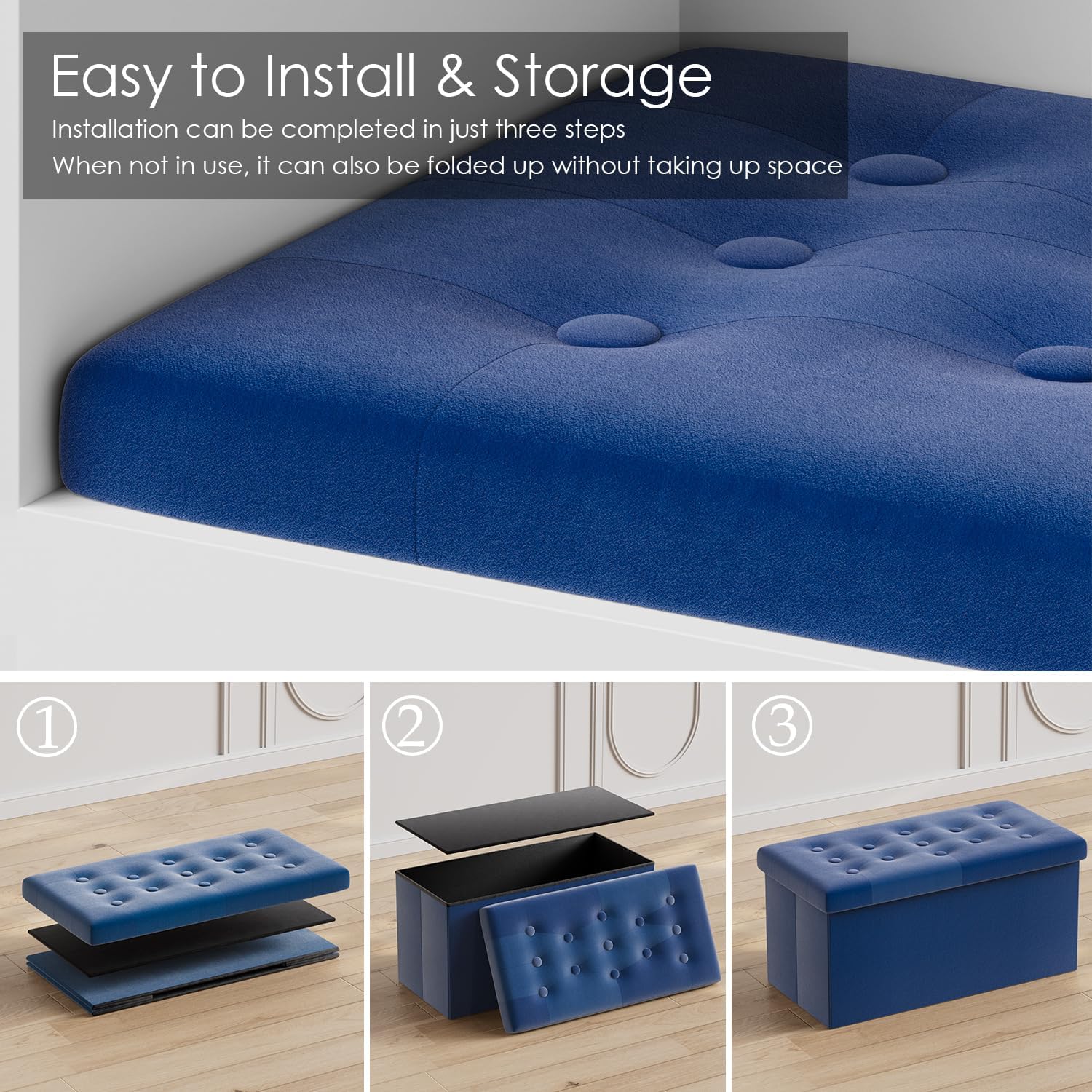 - ćSECONDS TO ASSEMBLEć: The storage chest can be easy set up and assemble in few seconds, suitable for living room, bedroom, entryway, lounge and more. Easily folded flat when not in use, keep it behind the door to saving space.