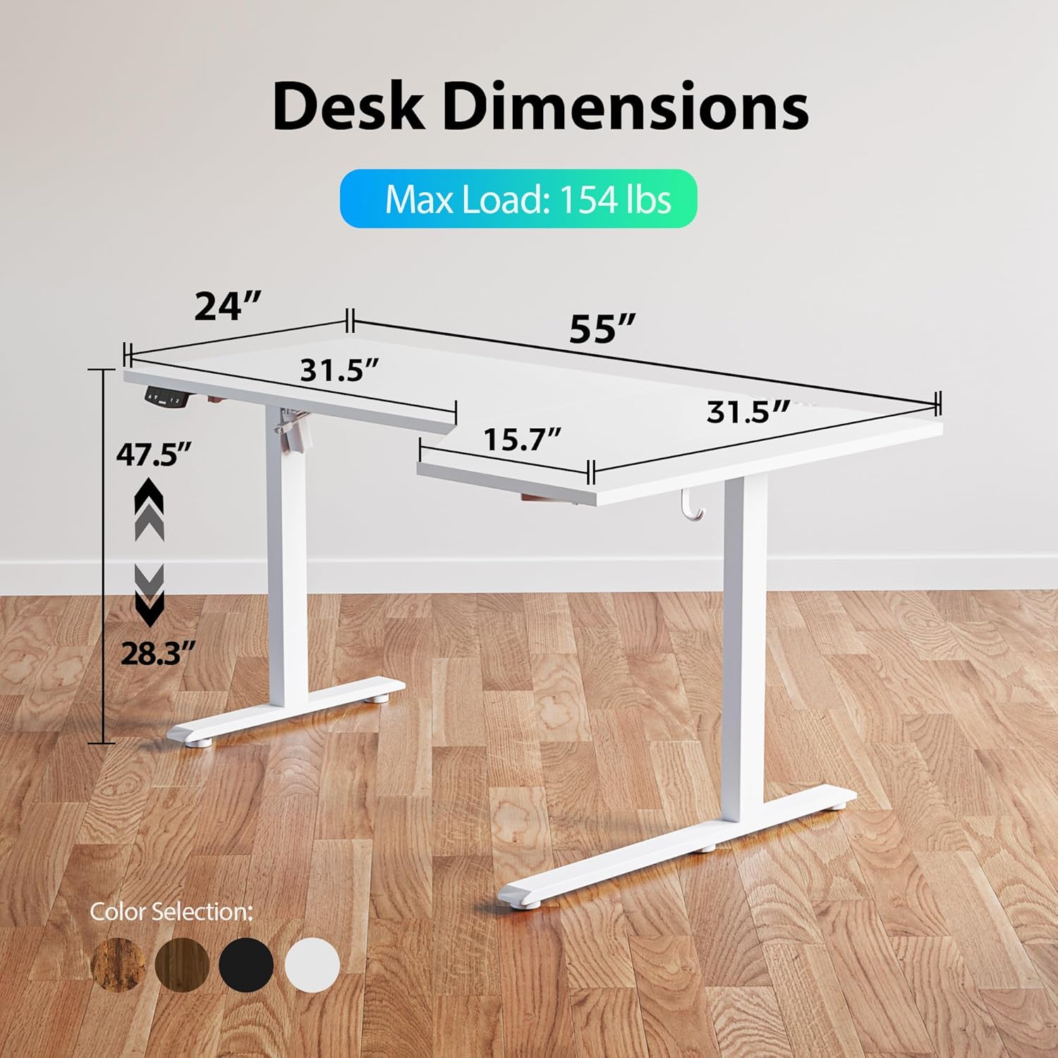 Agilestic Electric Standing Desk, L-Shaped 55 Inches Height Adjustable Desk, Sit and Stand up for Work Office Home, Ergonomic Rising Computer Table for Home Office with Splice Board, White