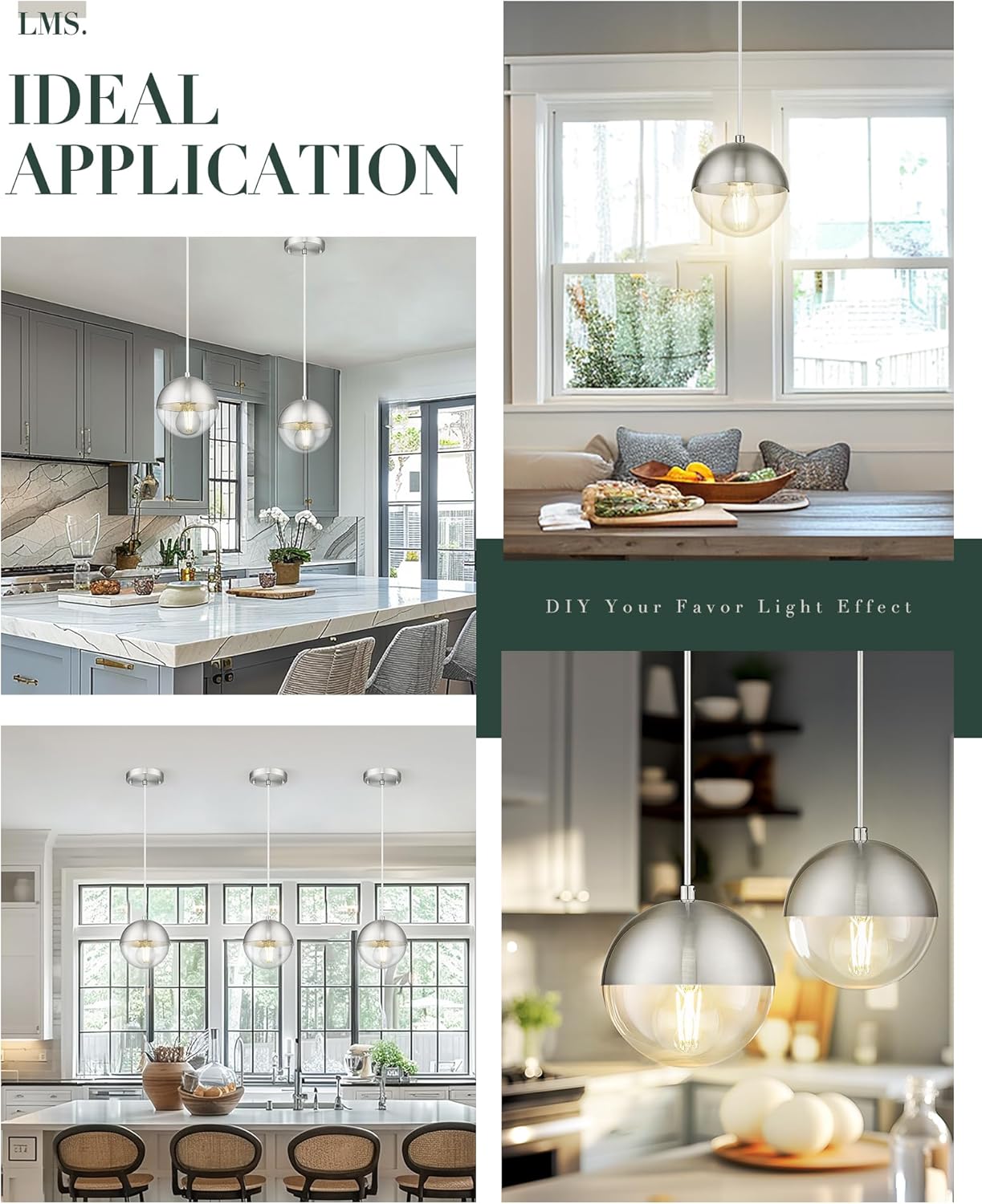 - Unique Decor and Industrial Style: The modern pendant lights are made of brushed nickel finish featured with high-quality metal and smooth clear glass shade, which provide a timeless mid century touch and a clean modern aesthetic for your space.