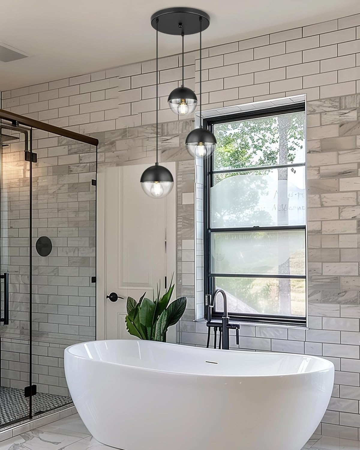 - Elegant Design for Your Space: The farmhouse pendant light fixtures feature metal frame in matte black finish design, with 3 clear globe glass. It adds warmth and illumination to your kitchen, living room, bedroom, and more.