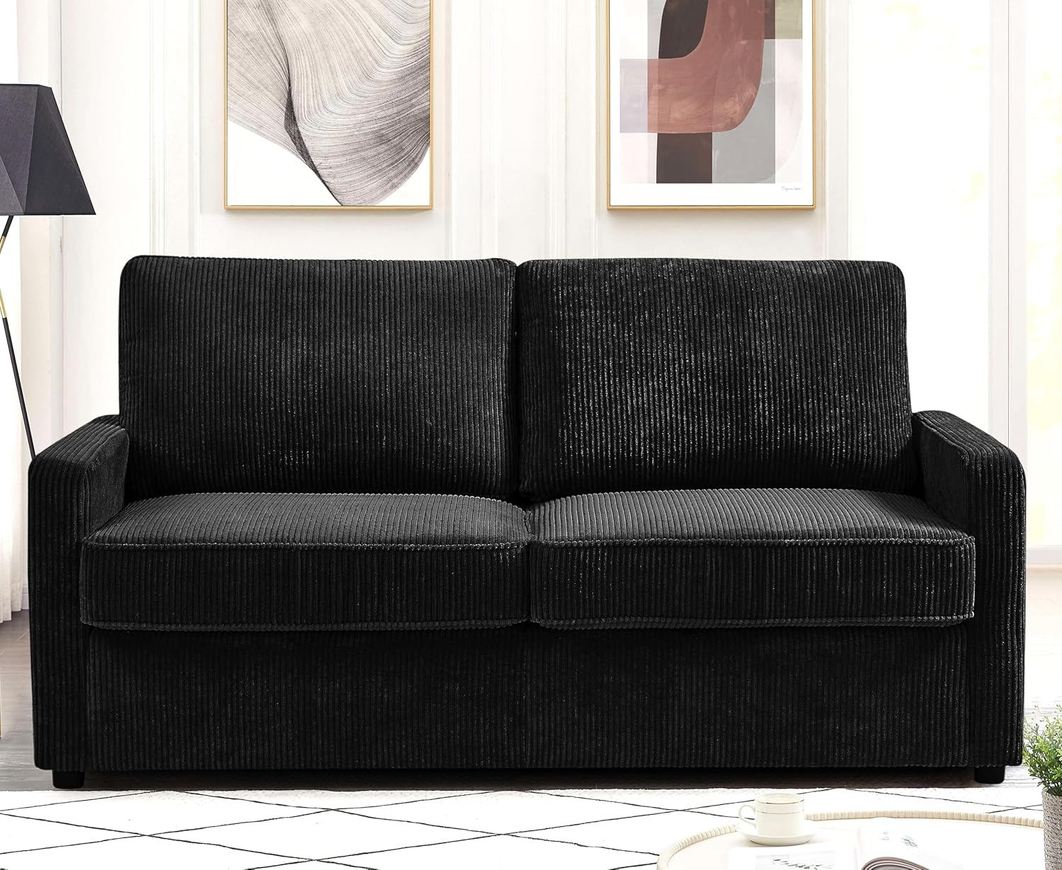 Reversible Sleeper Sofa Bed with Comfortable Memory Foam Mattress, Convertible Corduroy Full Size Pull Out Couch for Living Room, Space Saving Furniture, 70" Wide, Rectangular Arms, Black