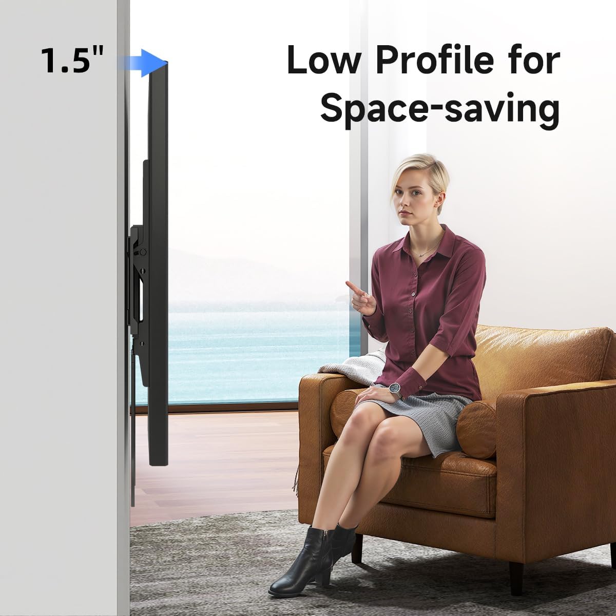 - Space-Saving Slim Design – Mounts your TV just 1.5 inches from the wall for a sleek, modern look while maximizing room space.