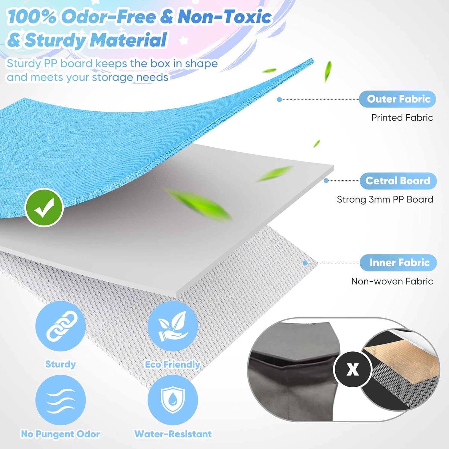 - Sturdy Construction Toy Chest Box: The kids toy box is made of high-quality linen fabric and features rivet-reinforced handles so you can move the extra large storage basket around easily. The 3 mm thick PP board can withstand a weight of 30-40kg, fully preventing the four sides from deforming due to frequent use