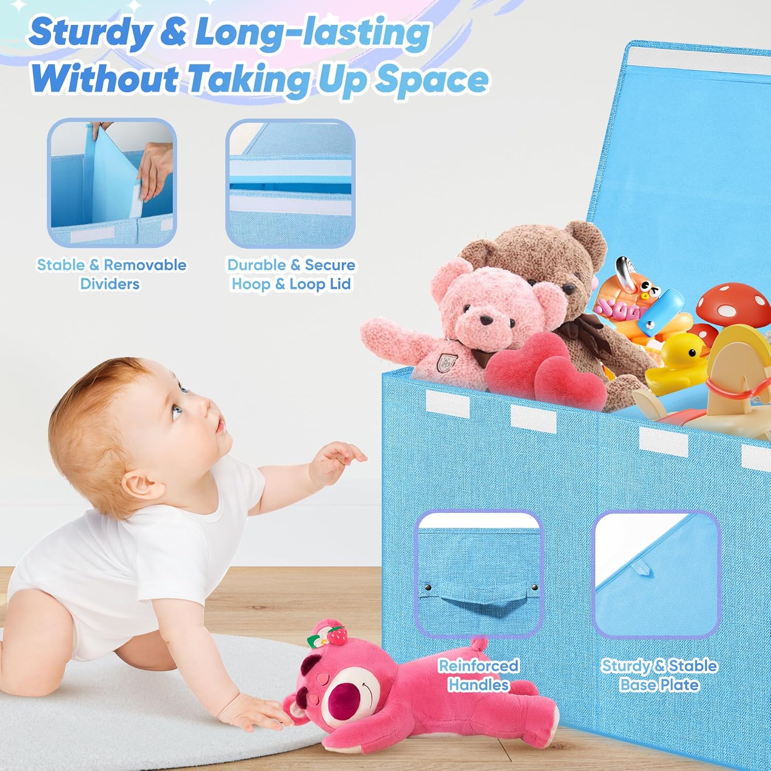 Extra Large Toy Box, Toy Box for Kids Boys Girls, Collapsible Sturdy Toy Storage Organizer with Mesh Pockets, 40"x14"x16" Kids Toy Chest Boxes Bins Baskets for Nursery, Playroom, Blue