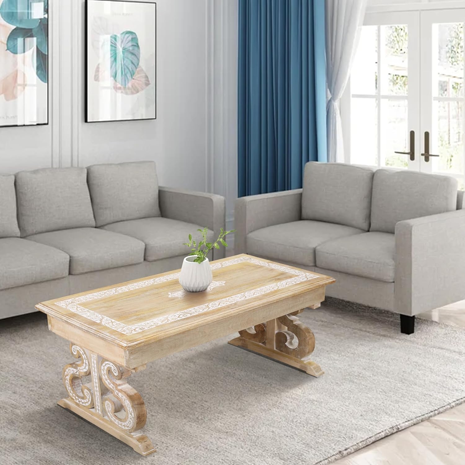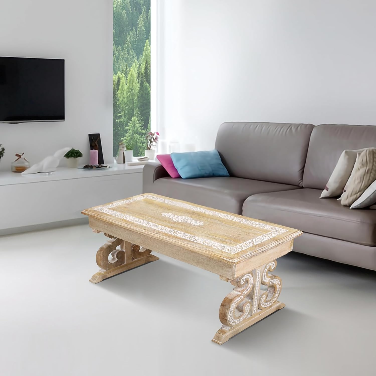 Lightnpro Mango Wood Rectangular Coffee Table - Living Room Center Table, Rustic Vintage Charm, Eco-Friendly Furniture, Reclaimed Wood - 40x18 Inch White Wash Finish