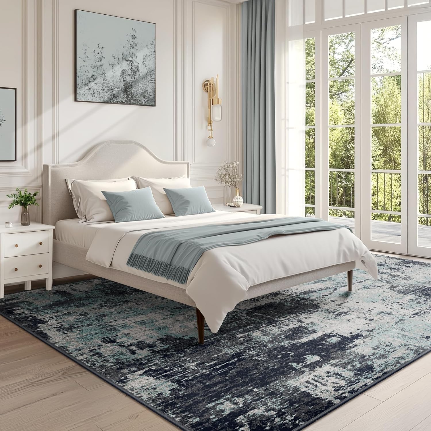 - Tides Series – Effortless style that flows with your life.This modern machine-washable non-slip rug features reinforced edges and a low-pile design that resists dirt. Its water-repellent surface makes spills easy to clean - liquids bead up for quick wiping. Simply machine wash in cold water (no bleach) to refresh. The non-slip backing keeps it securely in place. A perfect blend of function and contemporary design for active homes.