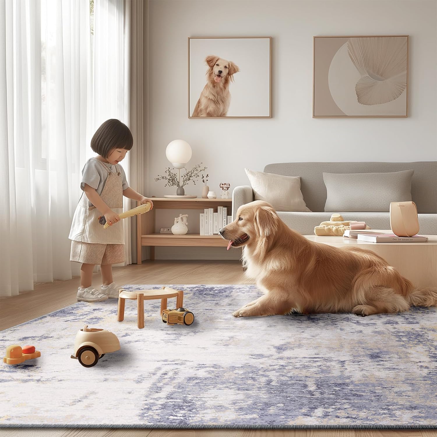 - Soft Modern Area Rug: this area rug with a unique silk-like luster and a dense texture is made of low-pile soft material which feels great underfoot. With its low pile, the fibers are short and tightly packed together, creating a smooth and even surface. that's comfortable to step on barefoot.