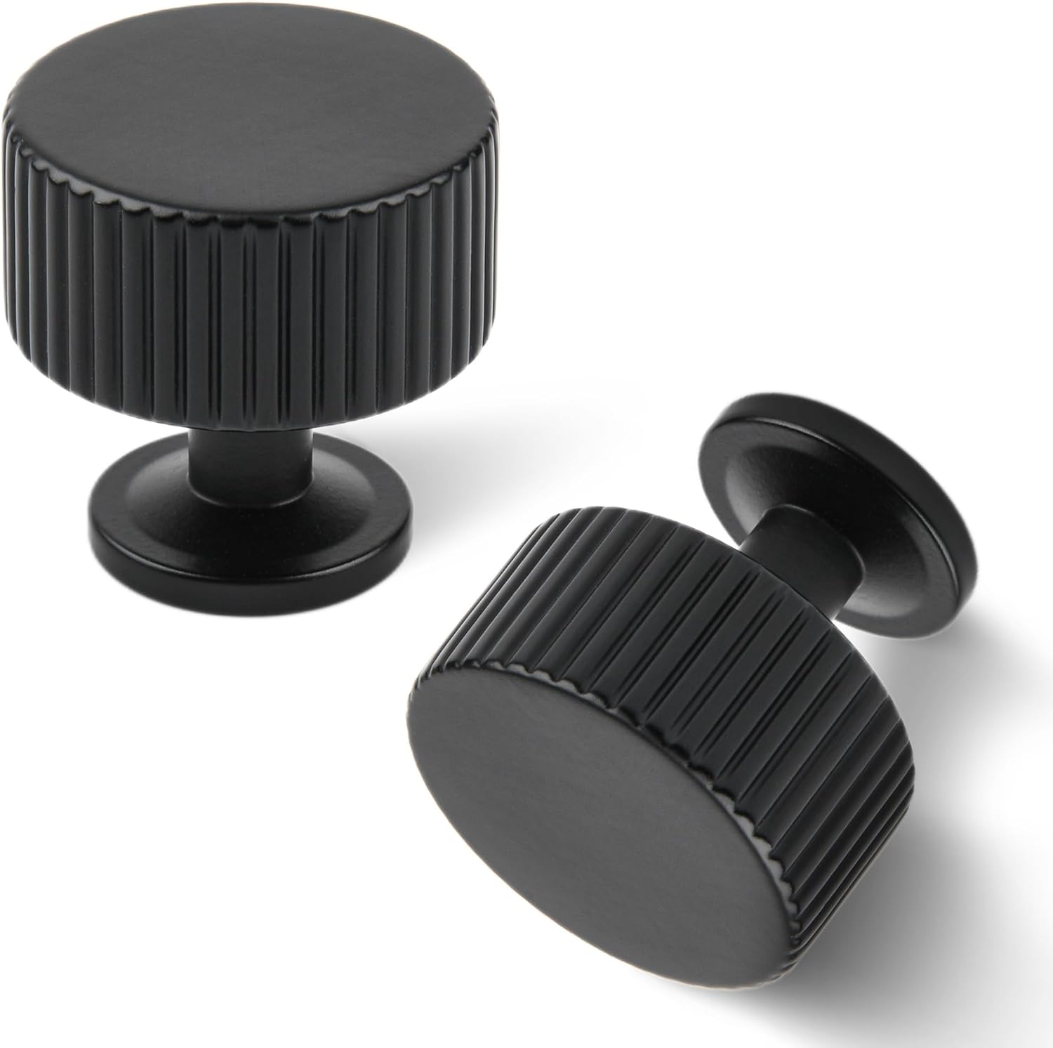 Matt Black Kitchen Cabinet Knob, 6 Pack Solid Brass Dresser Drawer Pulls, 1-1/10 Black Cabinet Knob for Cabinet Cupboard Wardrobe, Furniture Hardware Handles