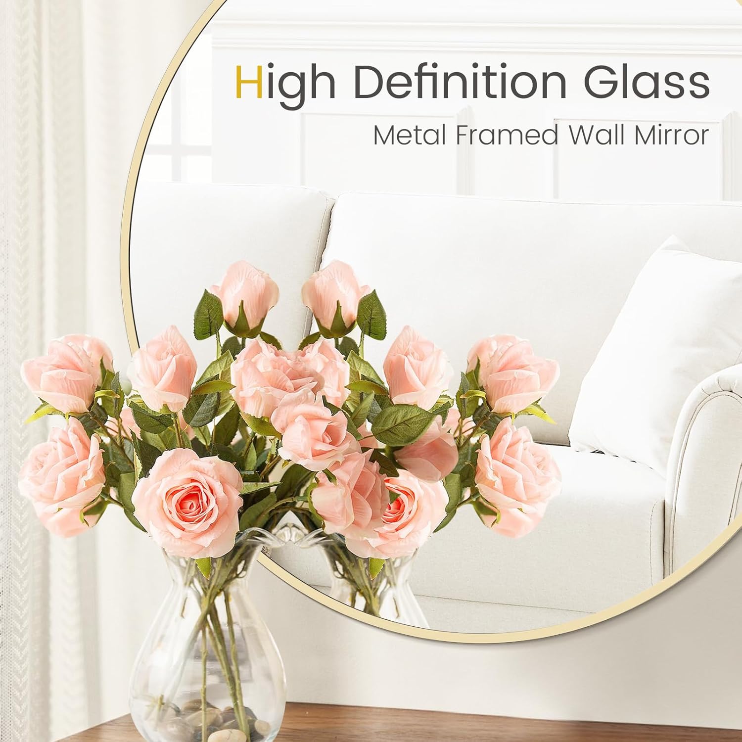 - 【HD MIRROR】Gold round mirror for wall is made of high-quality glass, high-definition imaging to restore real scenes and characters.