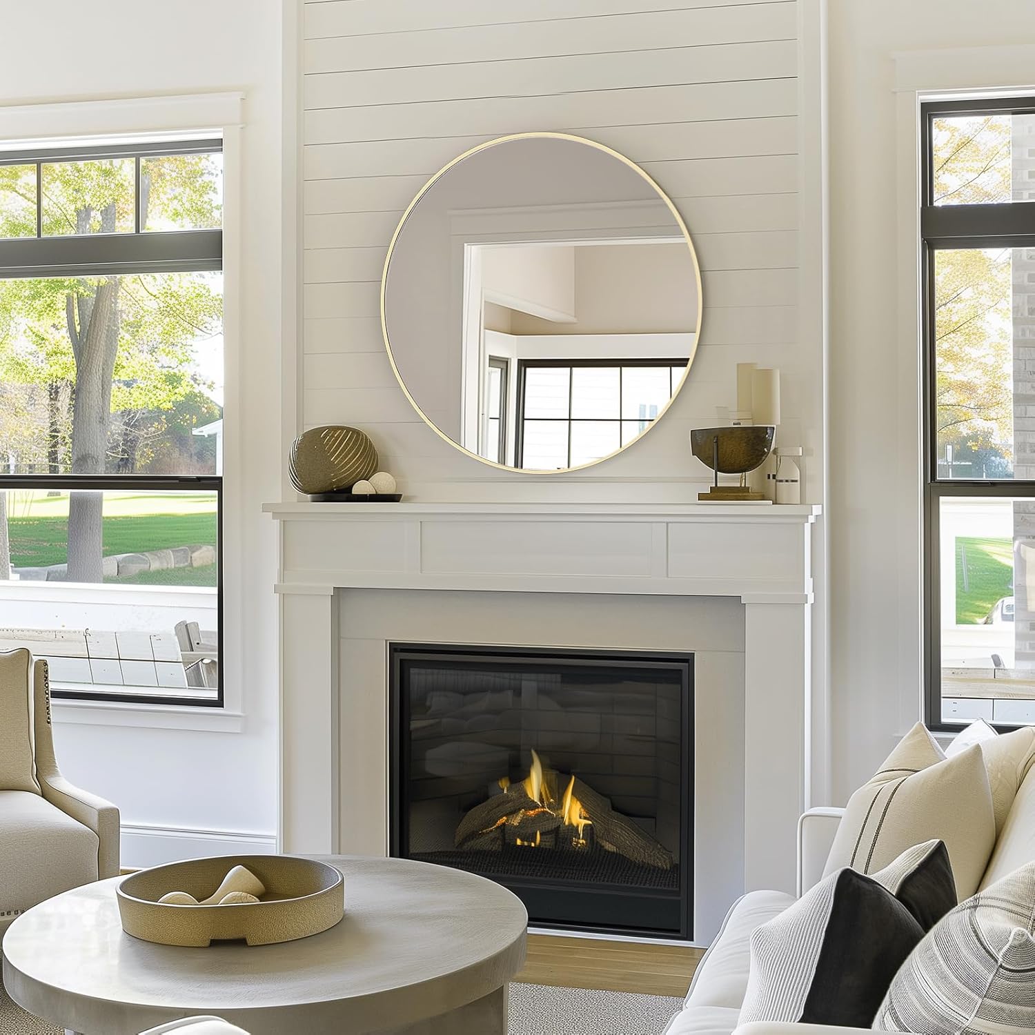 - 【MODERN & LUXURY】Simple and modern design, the gold-colored frame round mirror feel elegant. Suitable for any room, Bathroom, bedroom, living room, corridor, entrance and more.