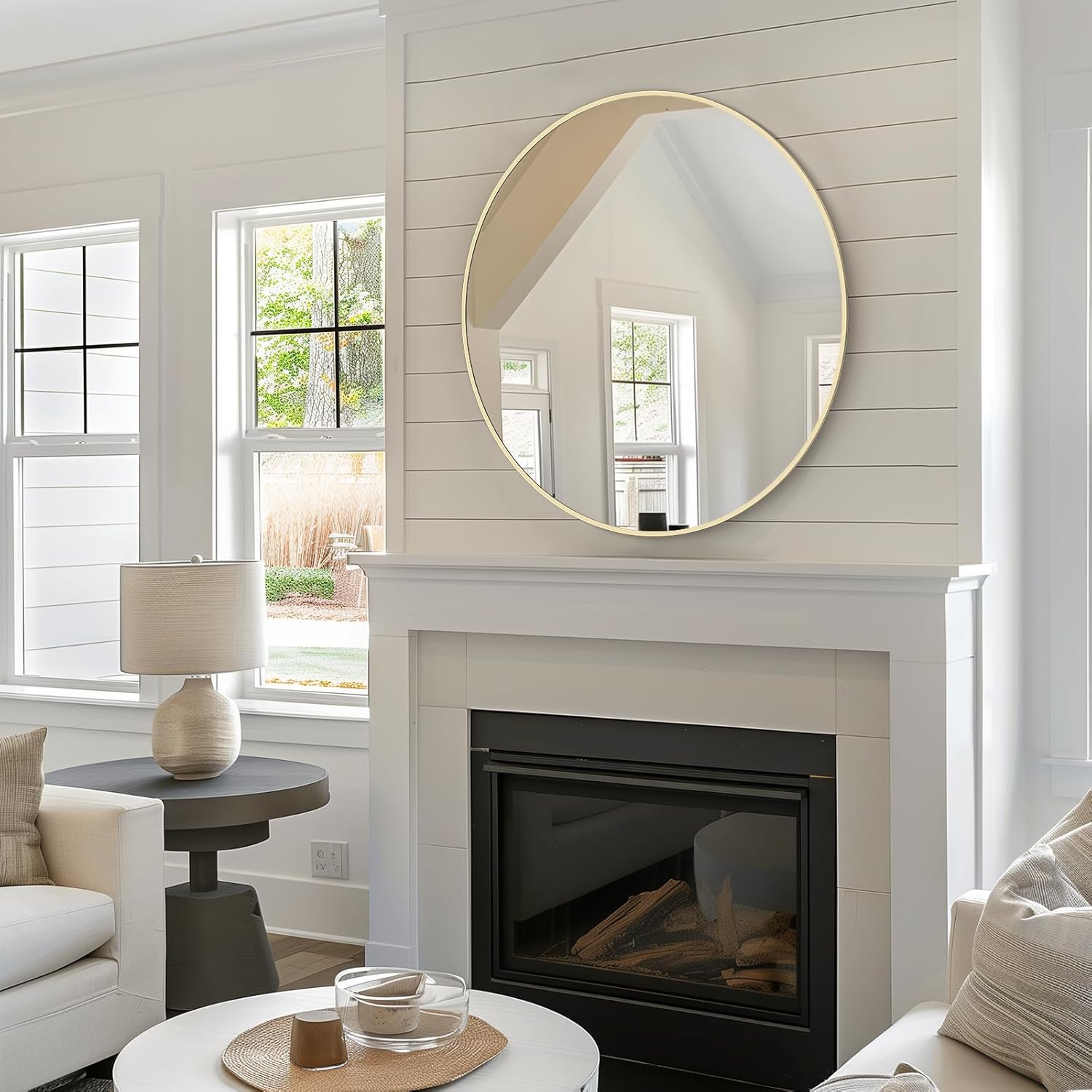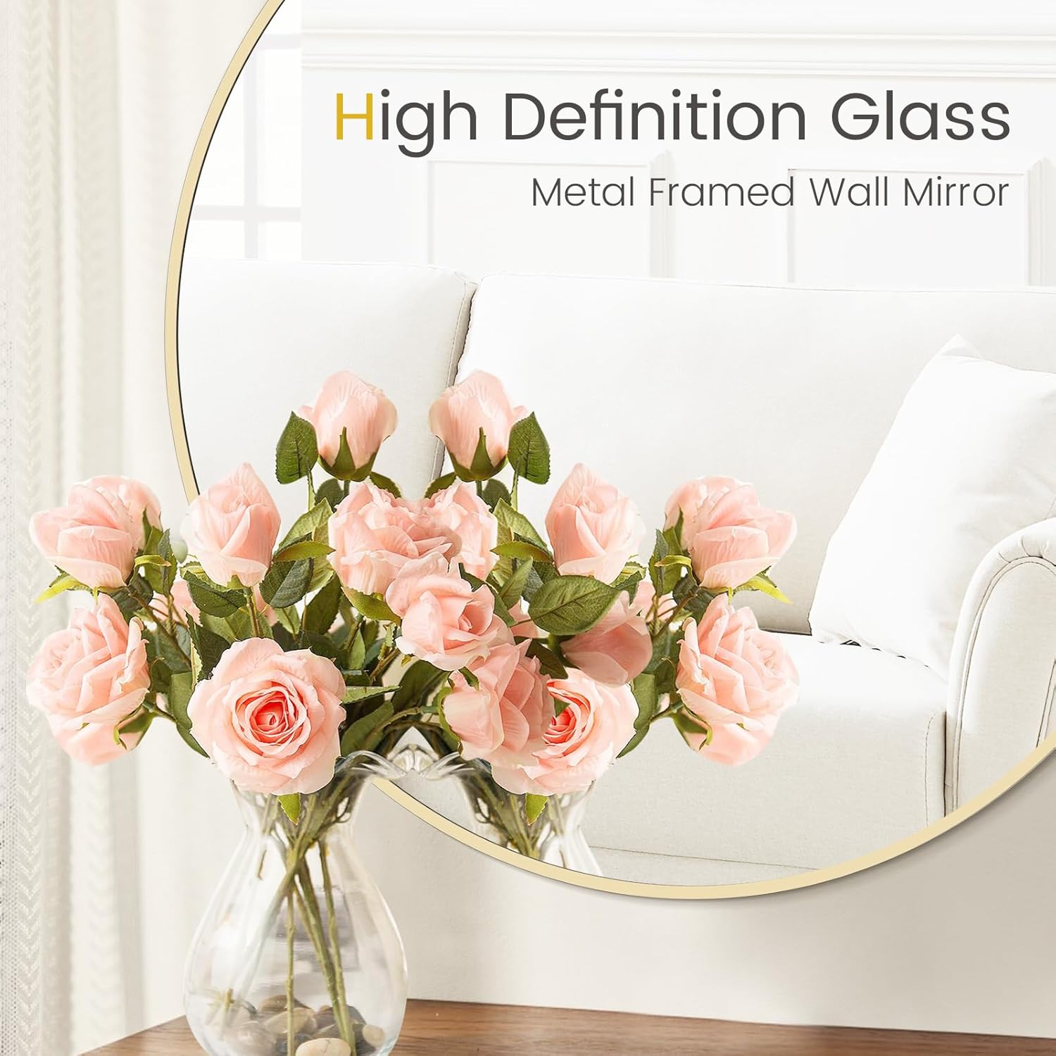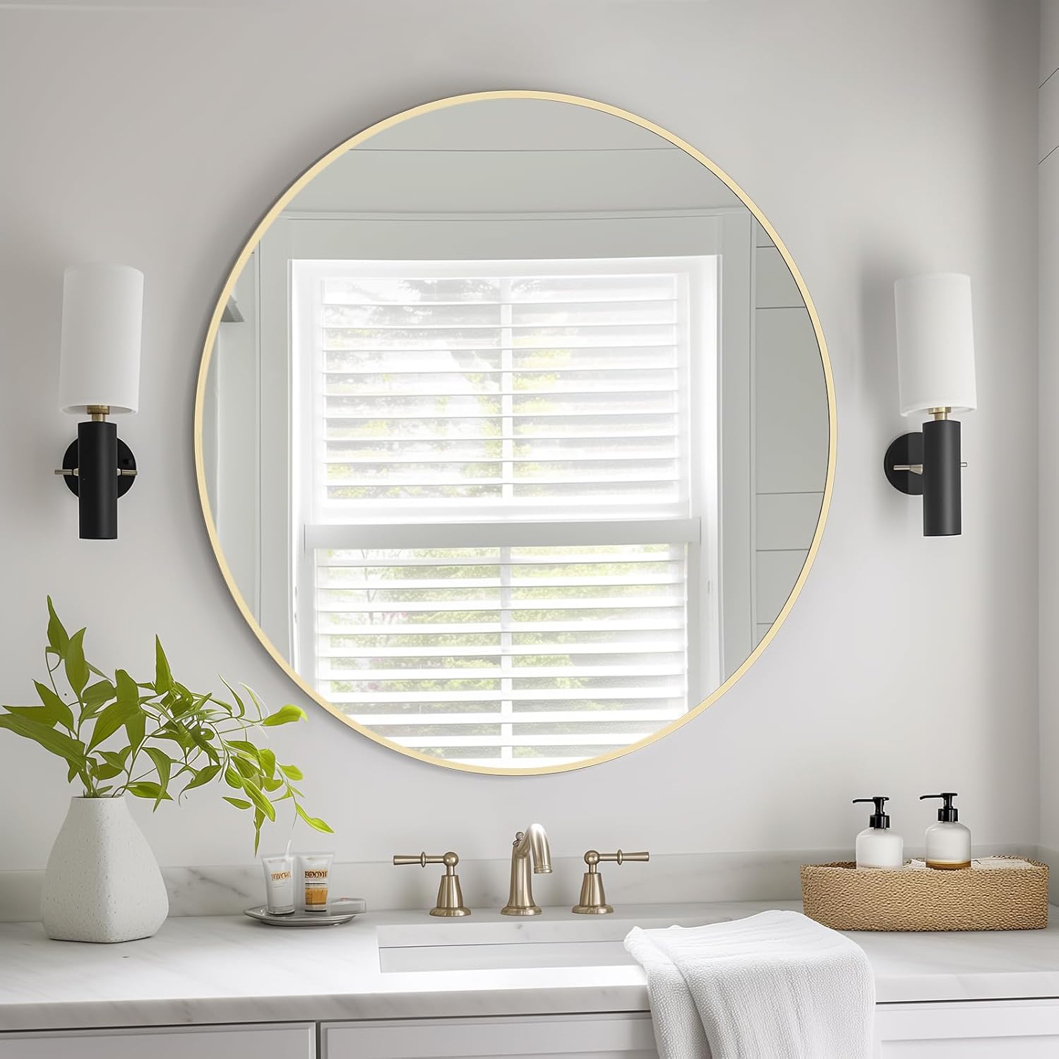 - 【MODERN & LUXURY】Simple and modern design, the gold-colored frame round mirror feel elegant. Suitable for any room, Bathroom, bedroom, living room, corridor, entrance and more.