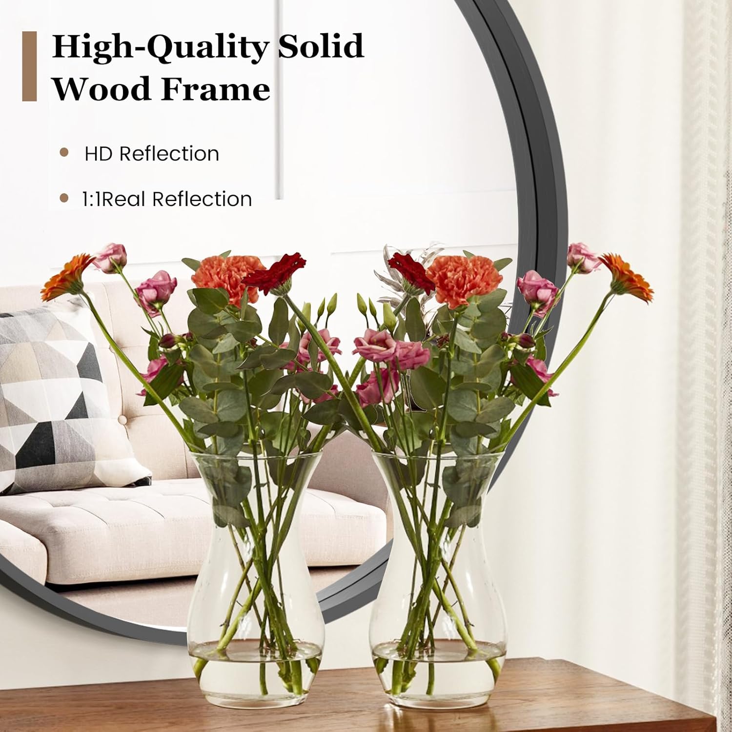 - 【HD IMAGE】Round mirror for wall is made of high-quality glass, can reflect light well, thereby bringing high-definition, presenting a beautiful reflection every time.