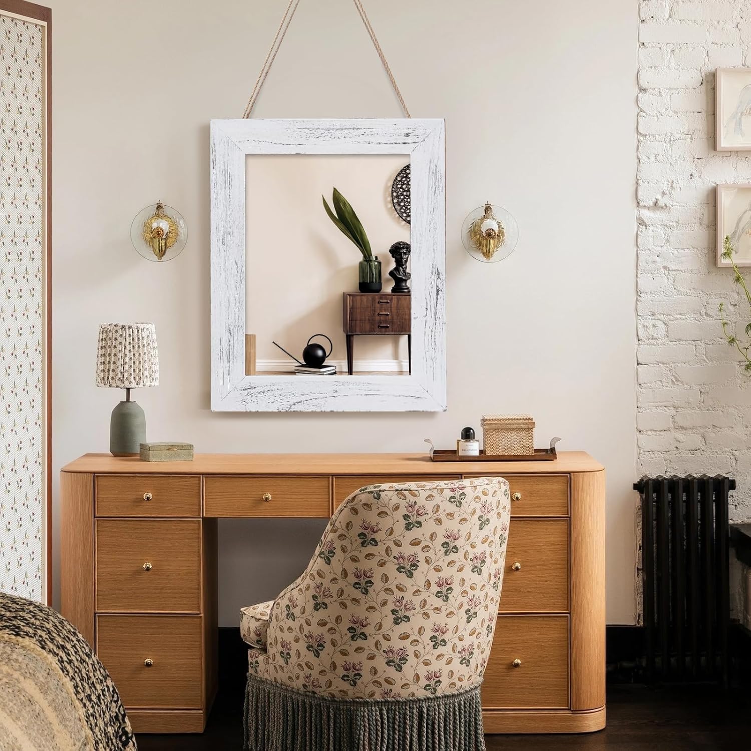 - HIGH-QUALITY MATERIALS: Our mirrors are composed of solid wood frames and lead-free and copper-free silver mirrors, and strong metal chains ensure stability and safety while adding an artistic atmosphere to the room. The solid wood frame is highly durable and easy to maintai.The chain and shelf can be disassembled and assembled at will, making one mirror multi-purpose