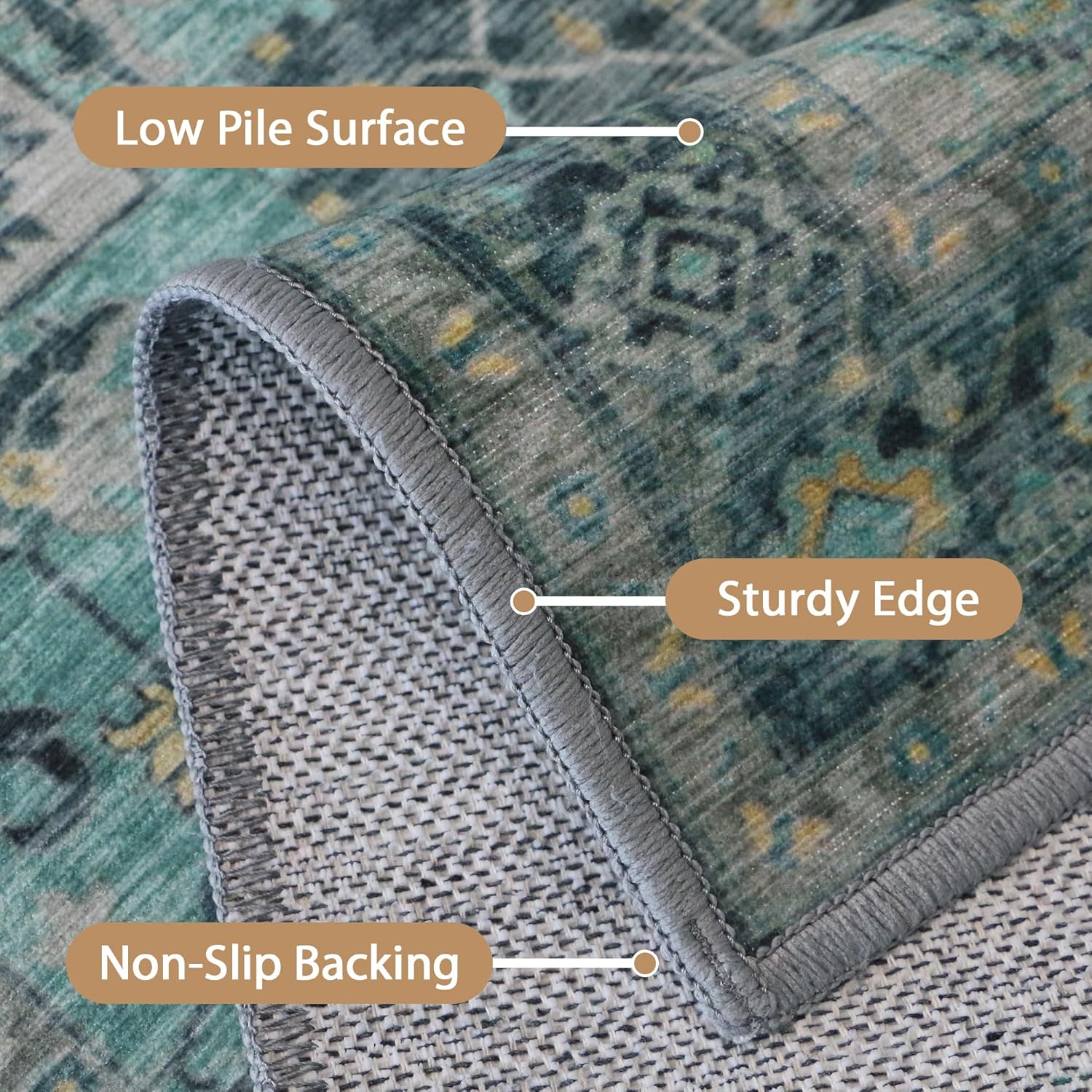 GENIMO 3x5 Area Rugs for Living Room, Machine Washable Non Slip Vintage Rugs, Low Pile Lightweight Chenille Print Rug for Bedroom, Dining Room, Home Office, Dark Green