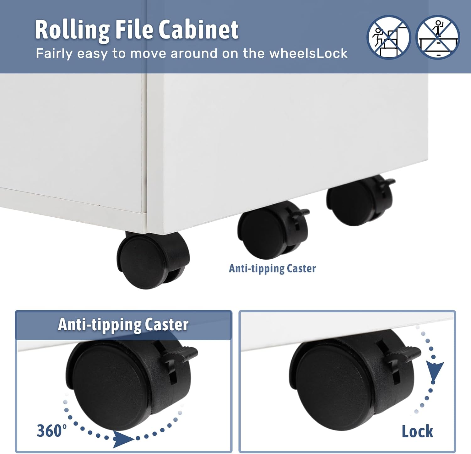 - Add More Mobility - Rolling on 5 rotatable wheels, including 2 front casters with braking function and 1 center caster to prevent tipping, this filing cabinet can keep stable or move freely and safely according to your need