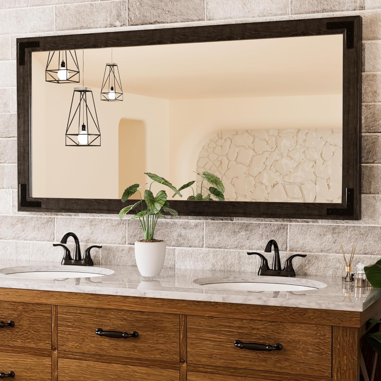 - 【Crystal-clear Reflection】Our rustic black wooden bathroom mirror for over sink is crafted with multi-layer advanced technology to ensure crystal-clear and distortion-free vision. Every reflection is as clear as reality, enhancing your daily grooming with astonishing precision and detail. Our black rectangle mirror is also equipped with a shatterproof film to offer protection in case of accidental breakage.