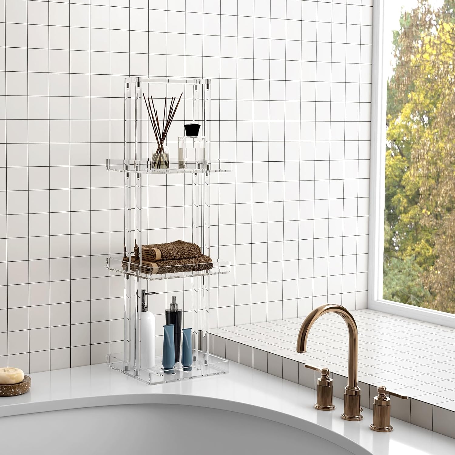 - Solutions for Corners - Use a clear acrylic corner shower shelf to store bath items and complement the overall beauty of bathroom decor, perfect for inside the wall shower, patio, bathtub, or anywhere in the bathroom without taking up floor and visual space.