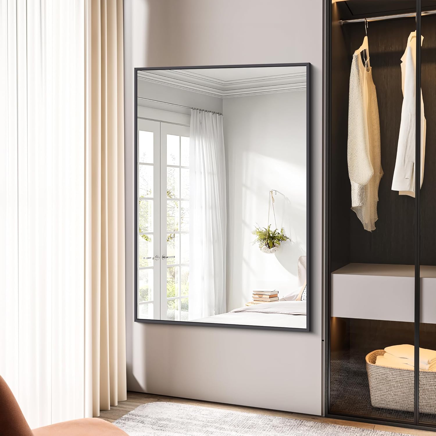 - CLEAR REFLECTION & NO DISTORTION :black bathroom mirrors for wall utilizes a four-layer floating technology to provide a high-definition reflection, presenting a clear visual effect without any distortion or bloating