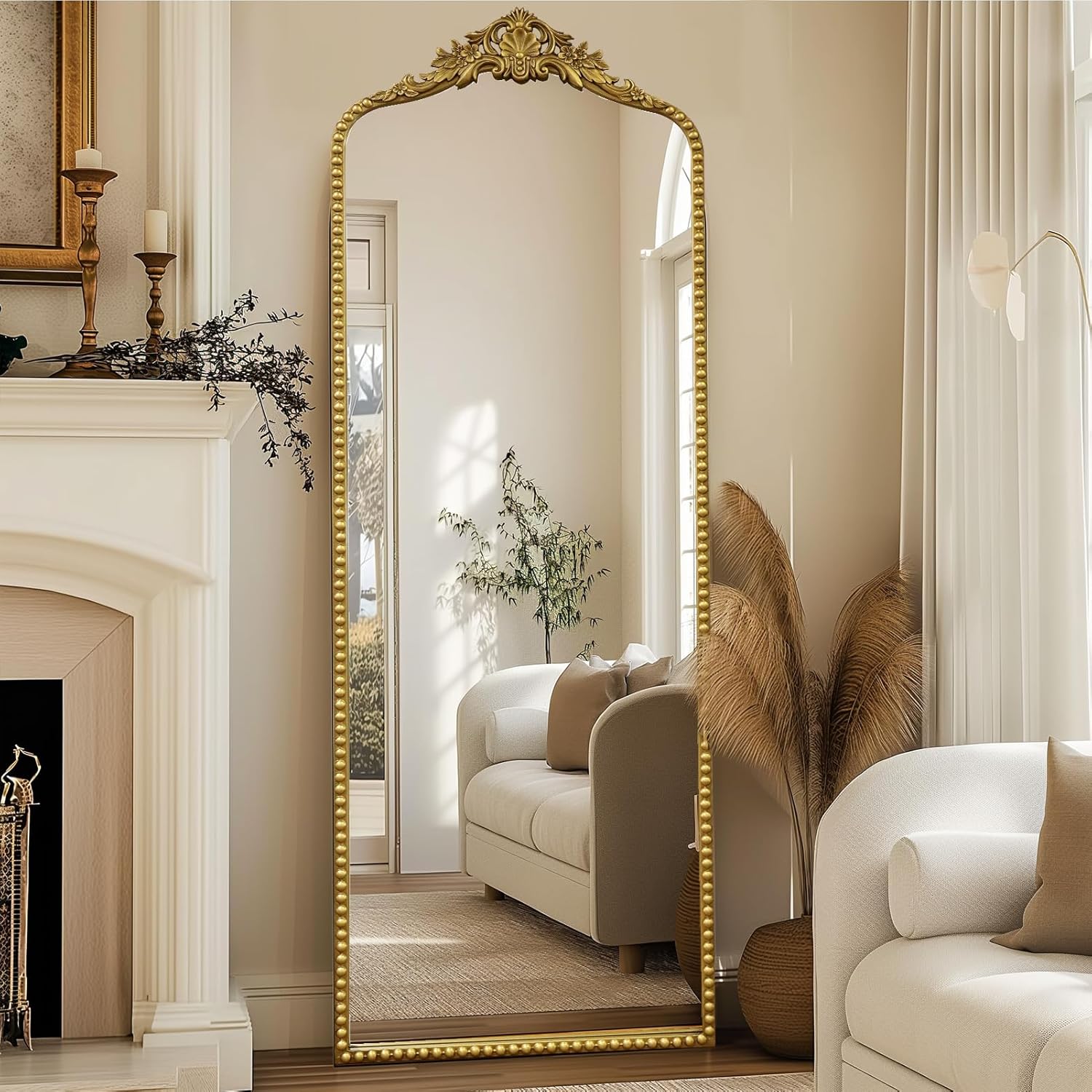 - Barque Style - Its ornate design, antique gold finish, and impeccable craftsmanship make it the perfect addition to any room. A statement piece that combines antique elegance with modern style. French country mirror will suitable for fireplace, bathroom, entryway, living room, bedroom, powder room, hall,and more.