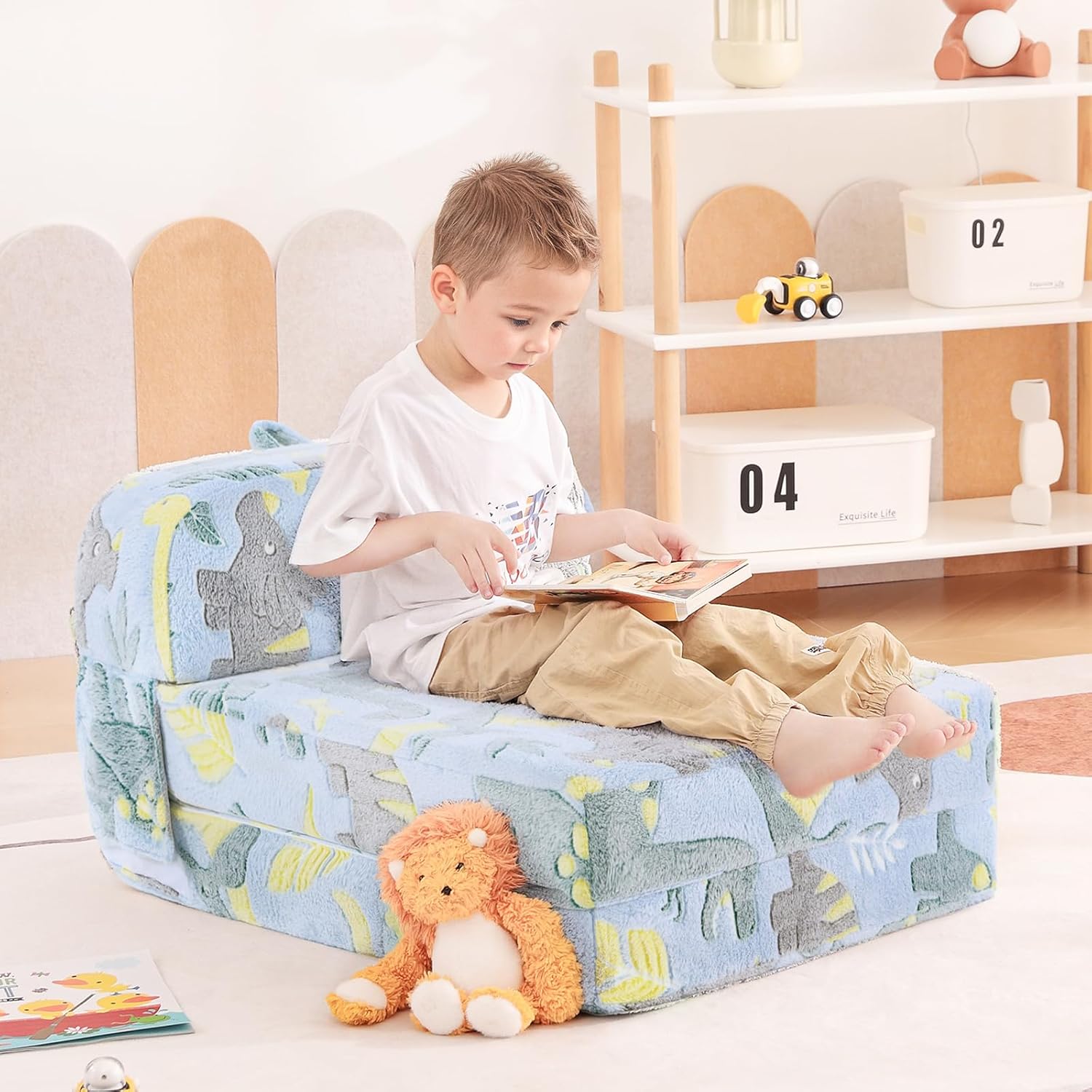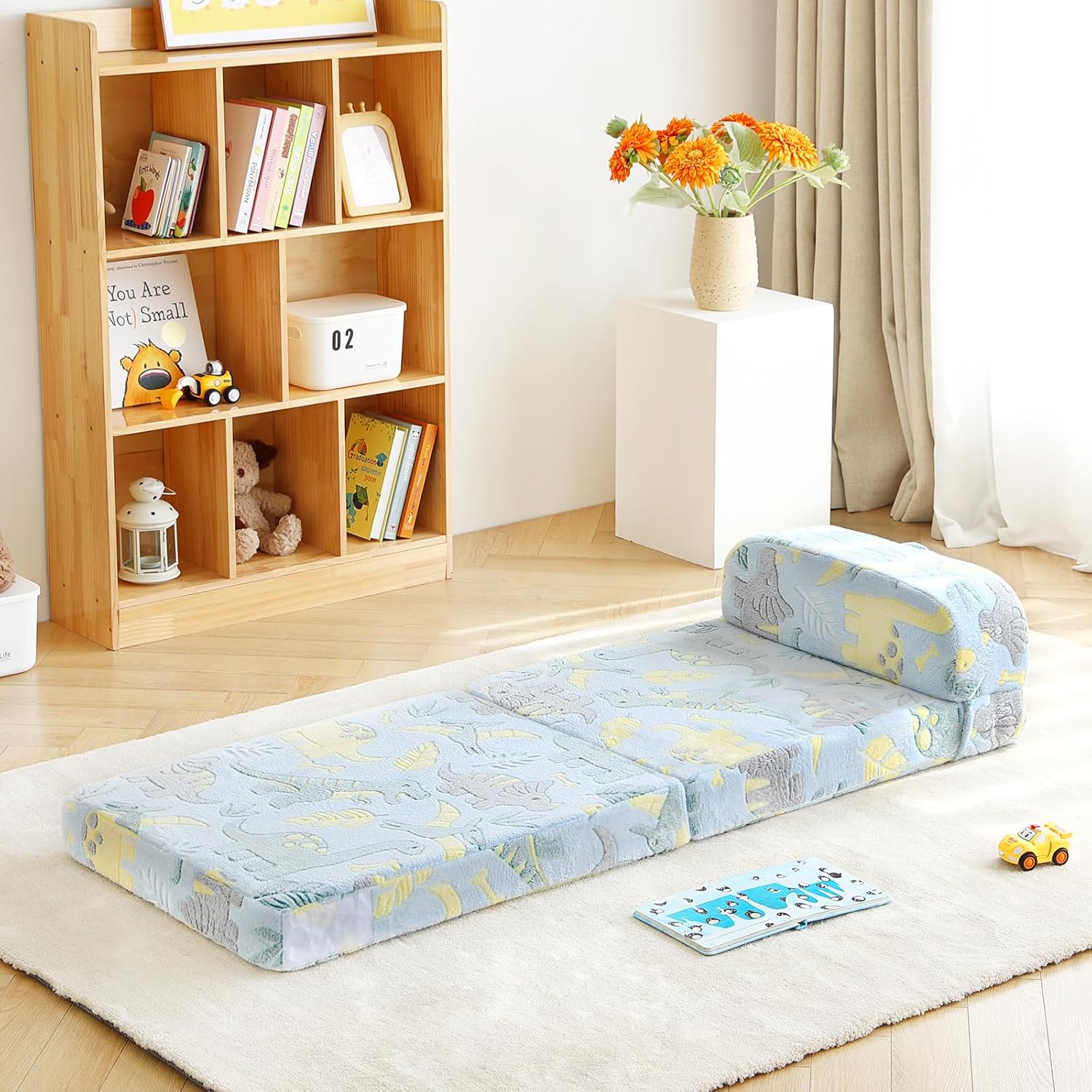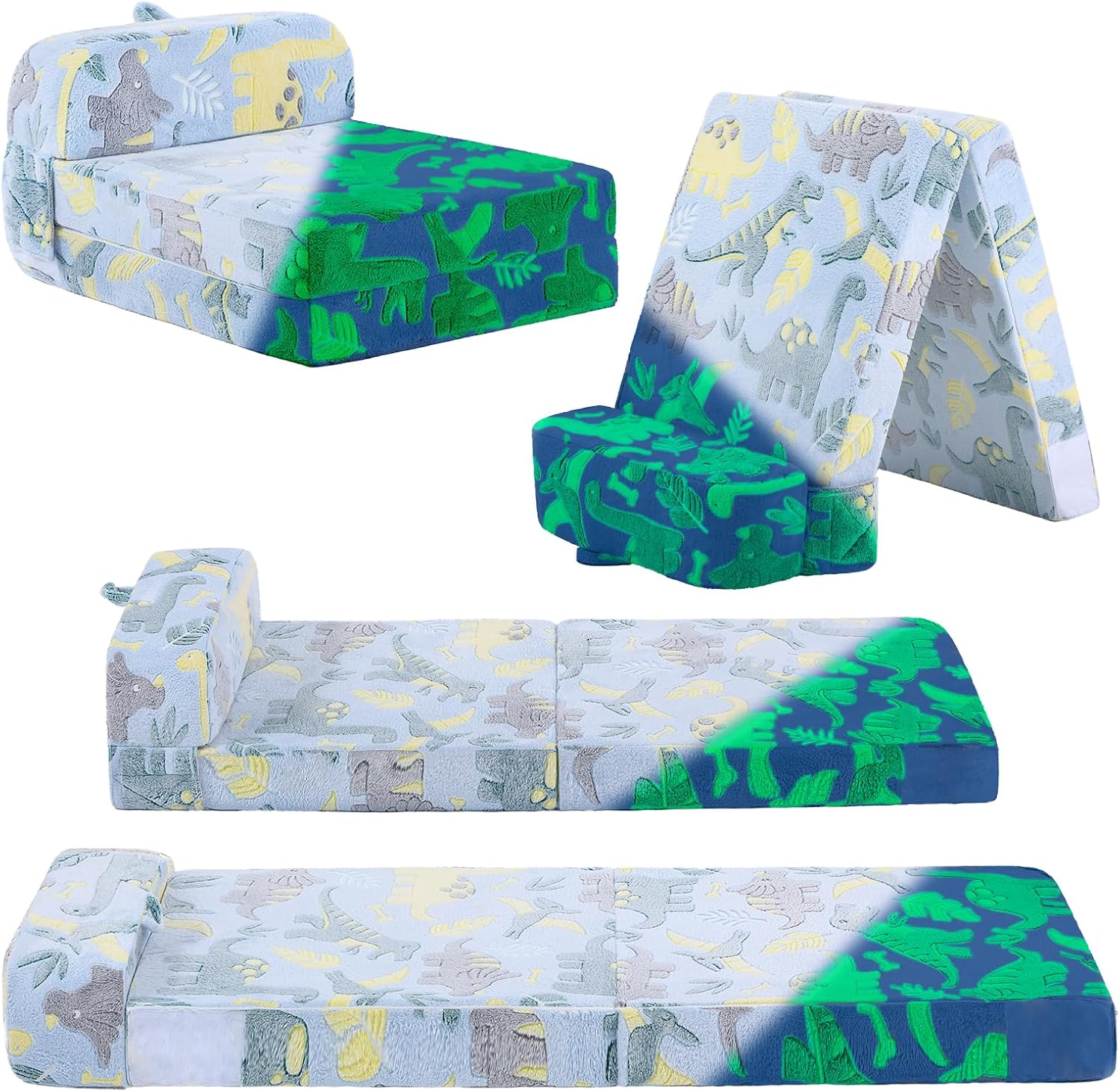 Tiita Folding Sofa Bed for Kids, Toddler Fold Out Couch With Removable Cover, Futon Sleeper Chair for Living Room, Guest Room - Dinosaur